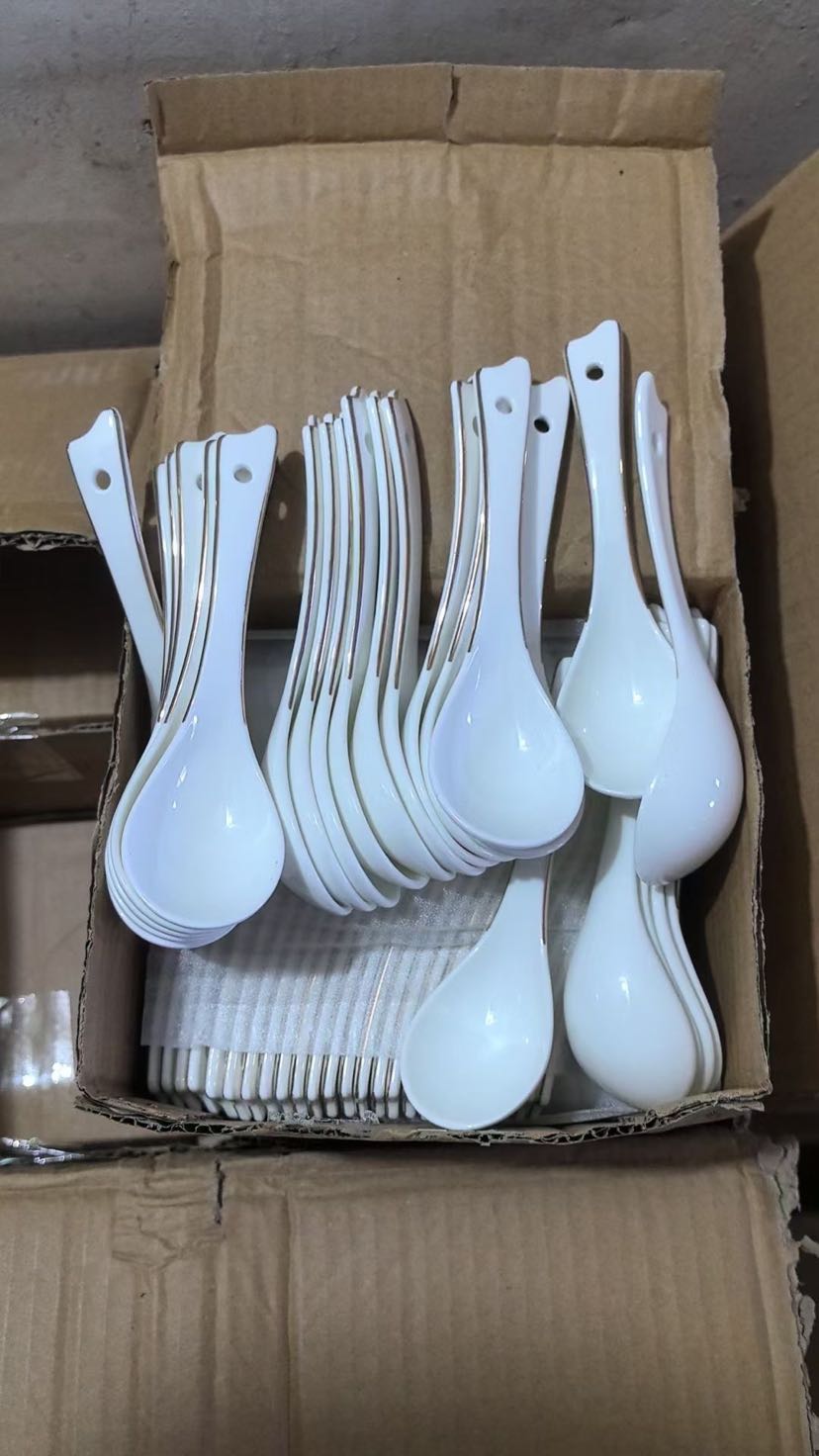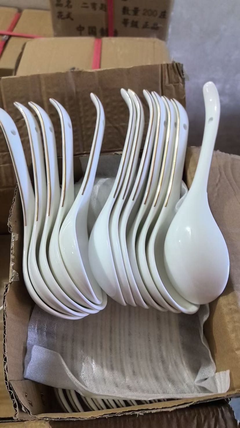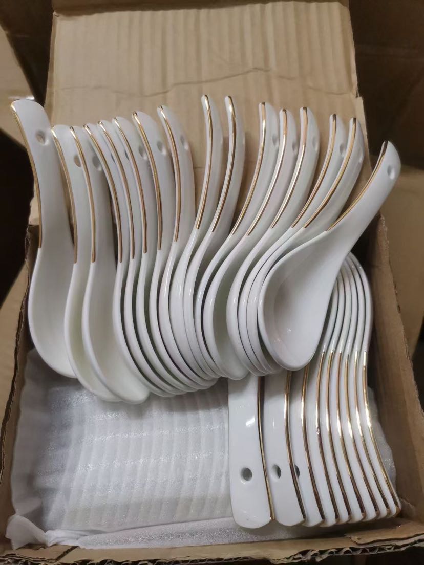 square and round ceramic upscale gold rimmed spoon