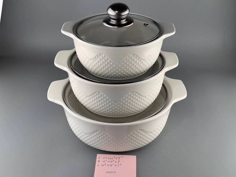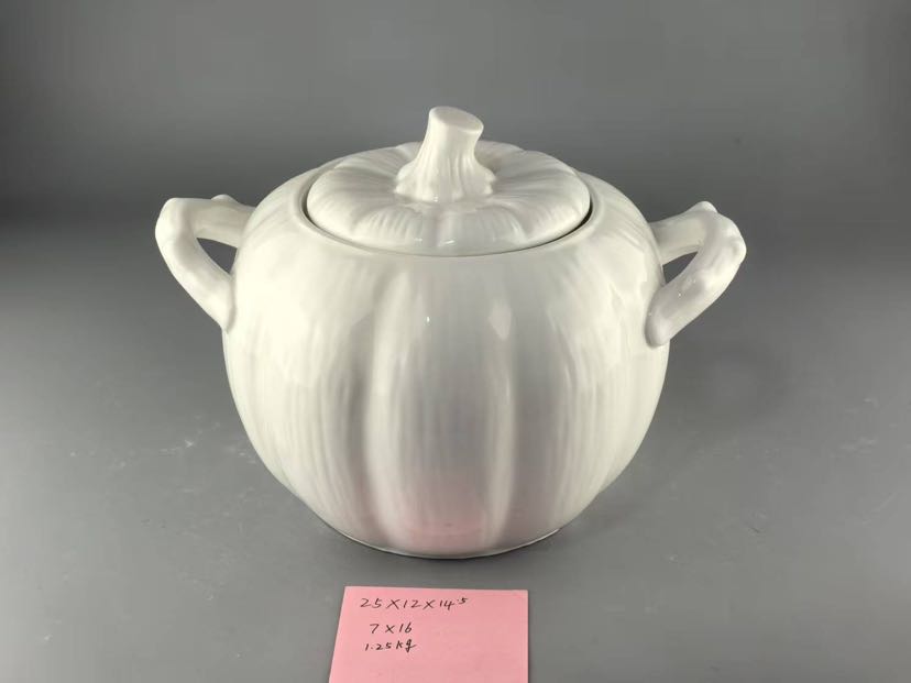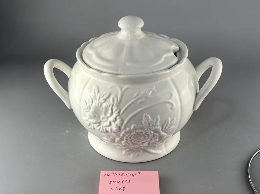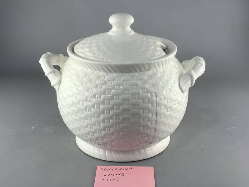 square and round ceramic white relief soup pot relief tableware series