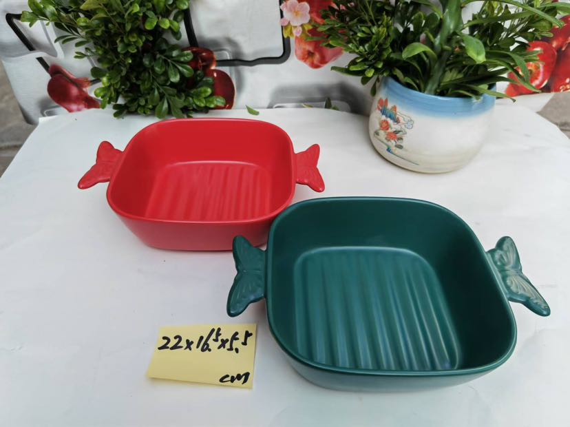 square round ceramic net red matte glaze series baking tray tableware