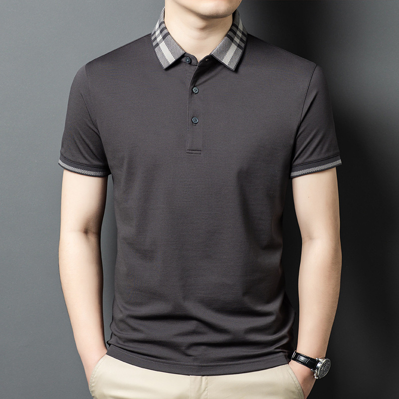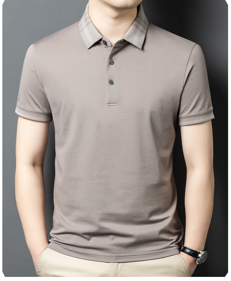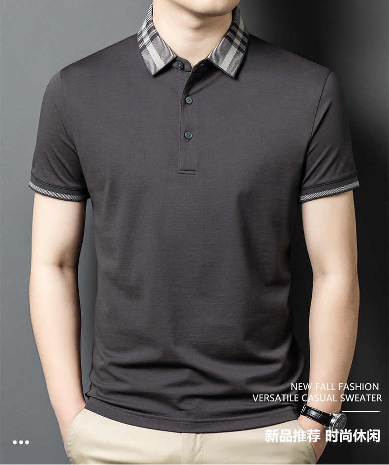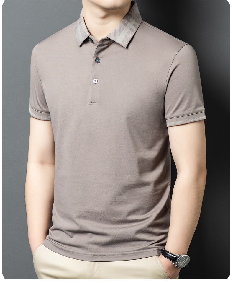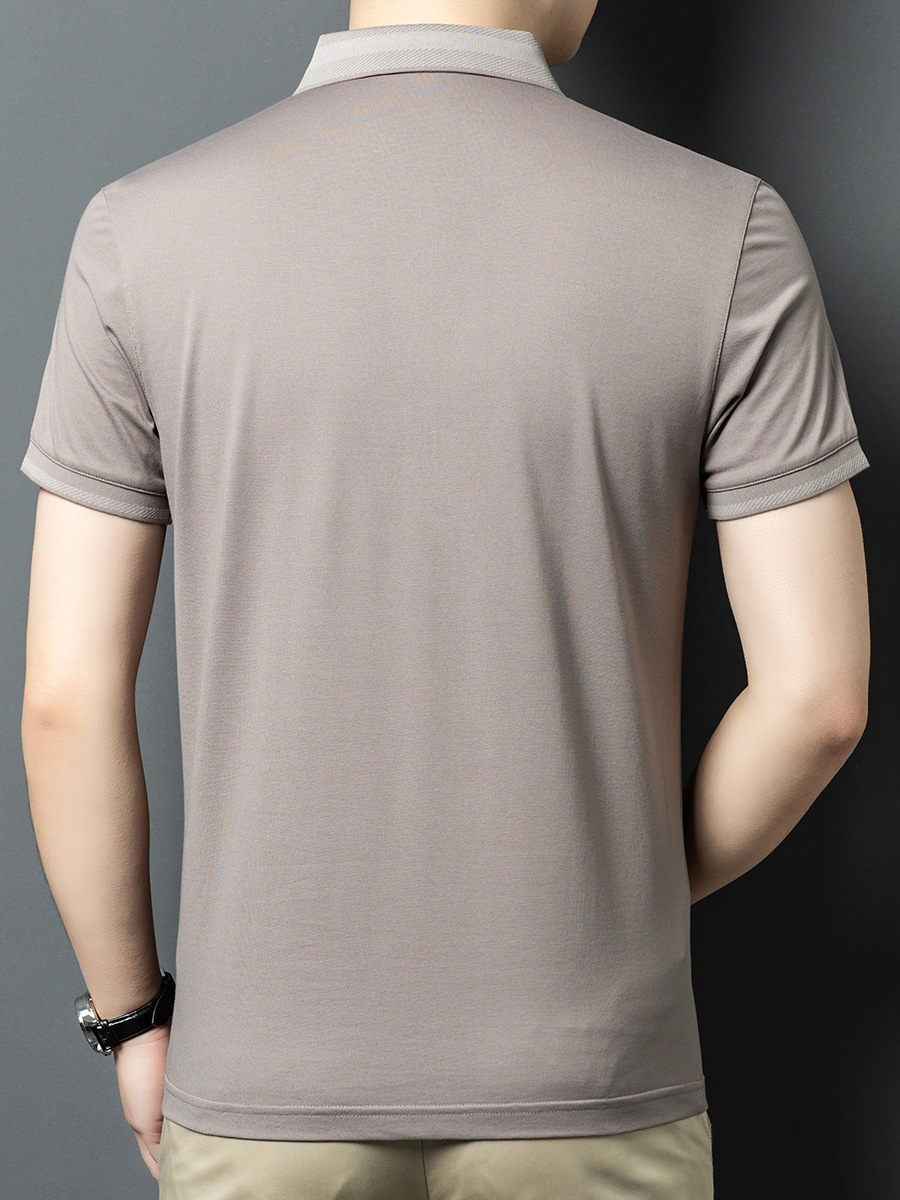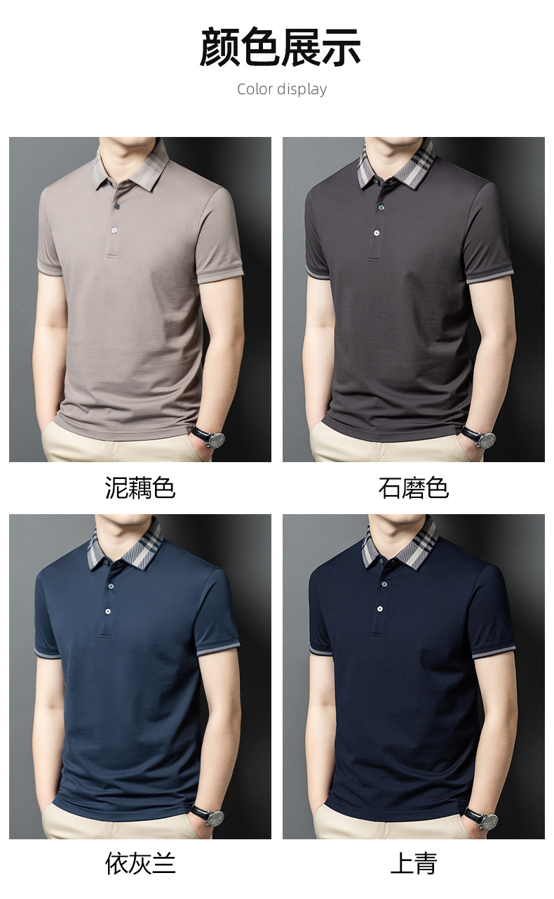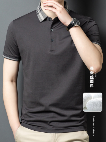 2025 new mulberry silk short sleeve t-shirt men's lapel middle-aged business leisure dad wear summer 中文版