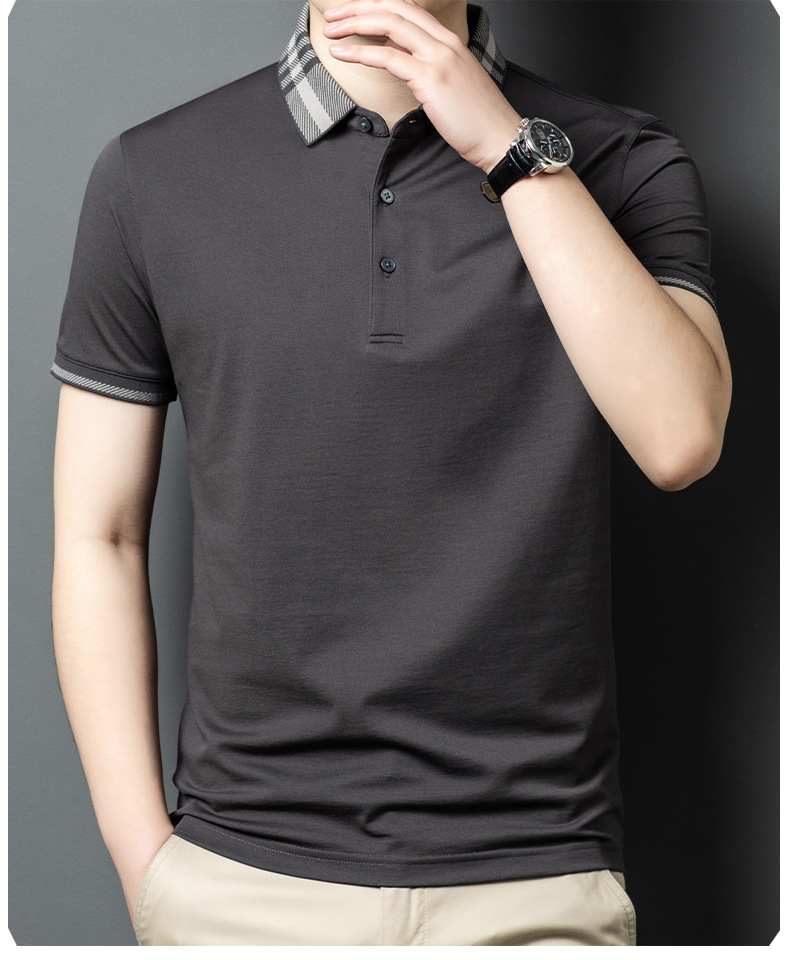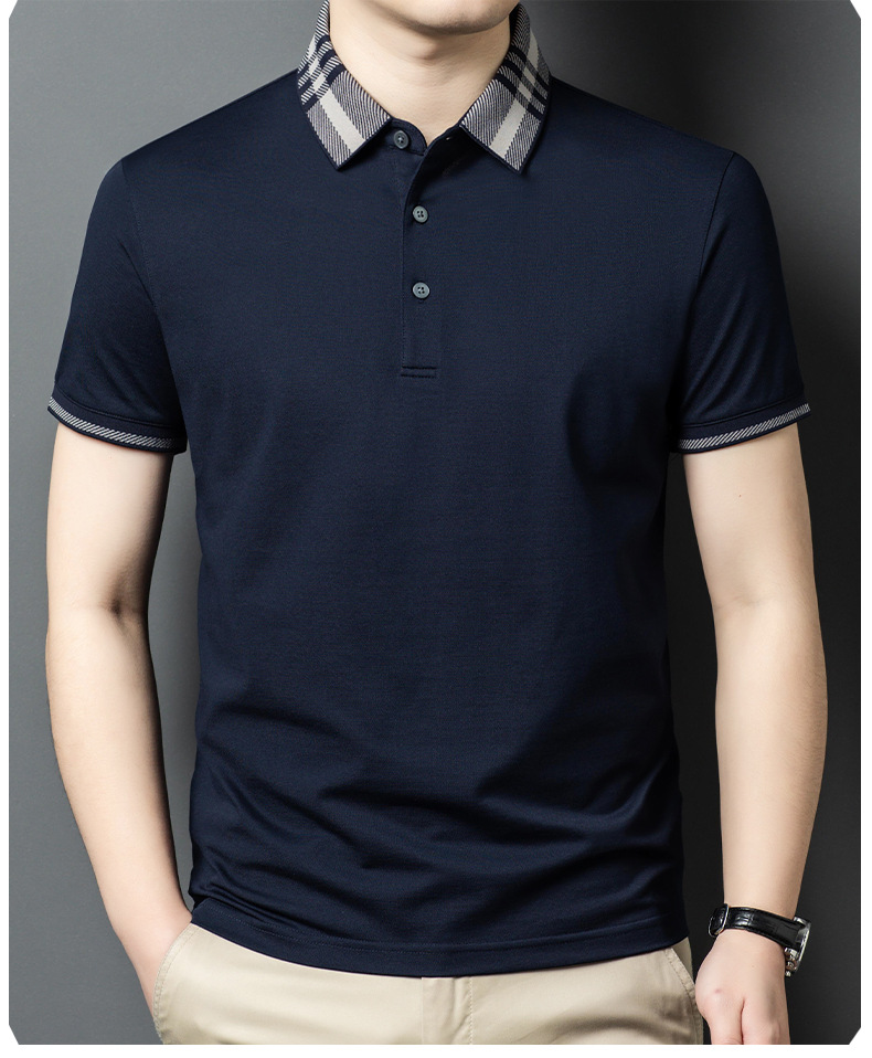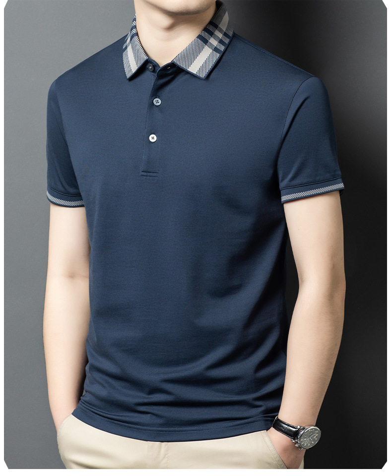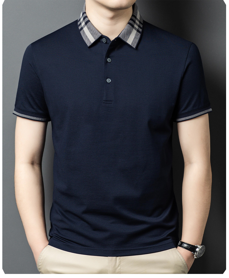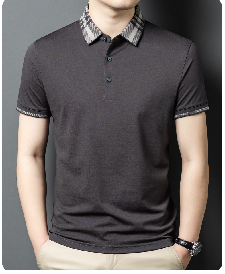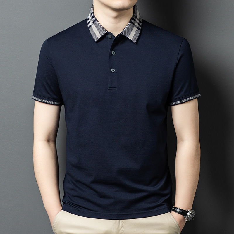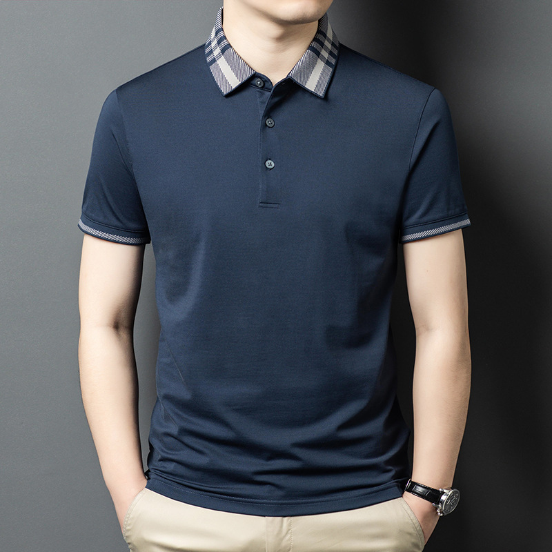 2025 new mulberry silk short sleeve t-shirt men's lapel middle-aged business leisure dad wear summer 中文版