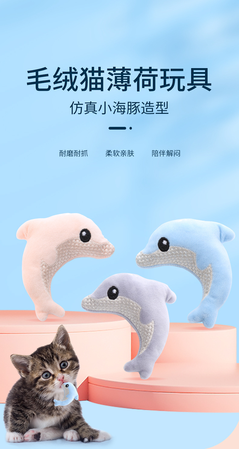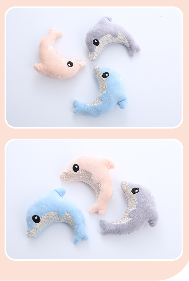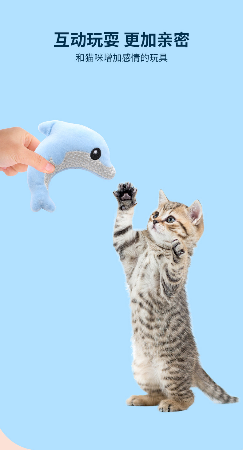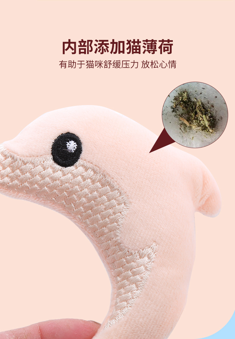 pet supplies in stock factory wholesale toy cute dolphin shape catnip plush self-hi toy 中文版