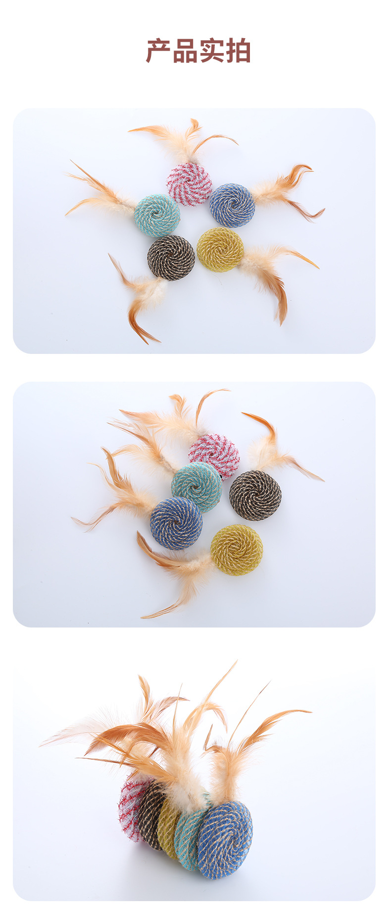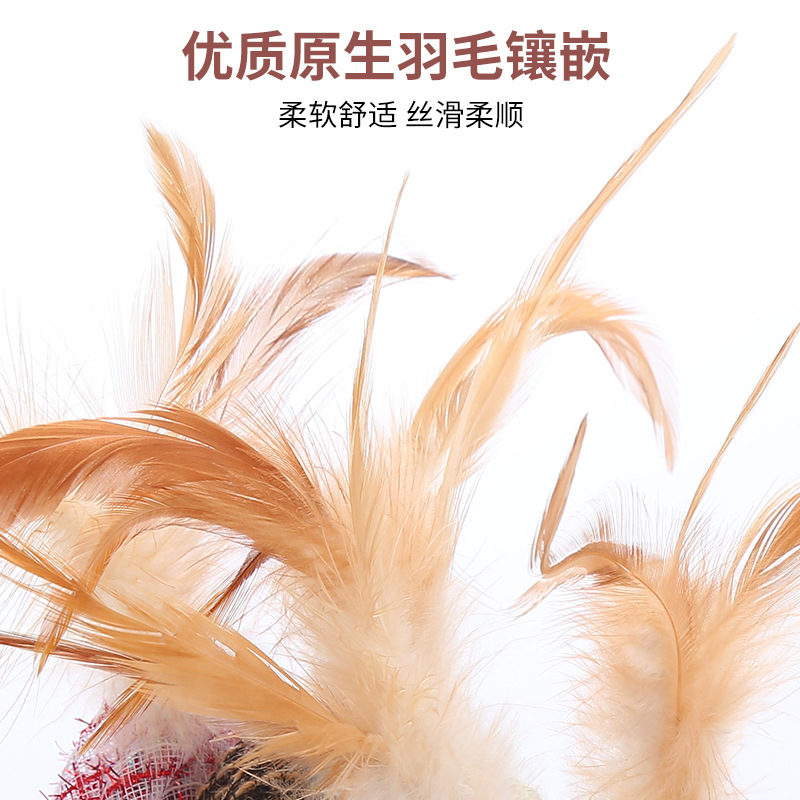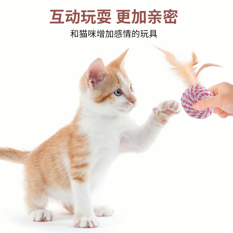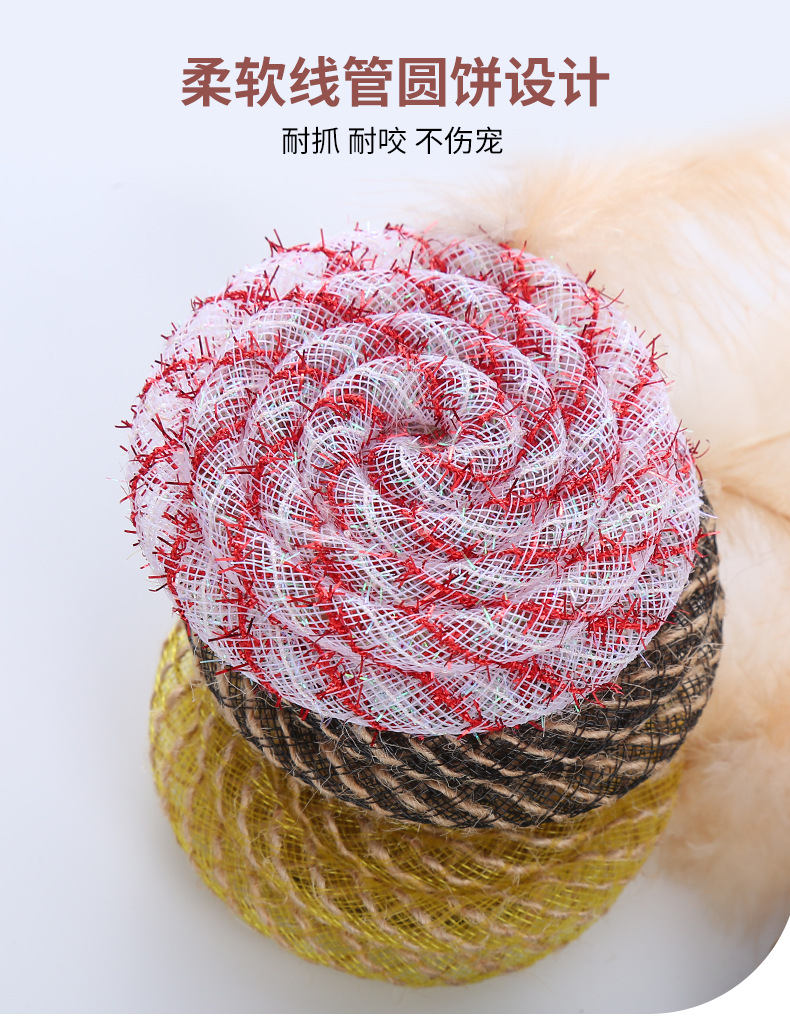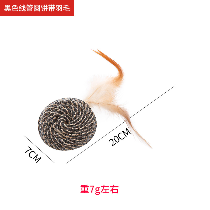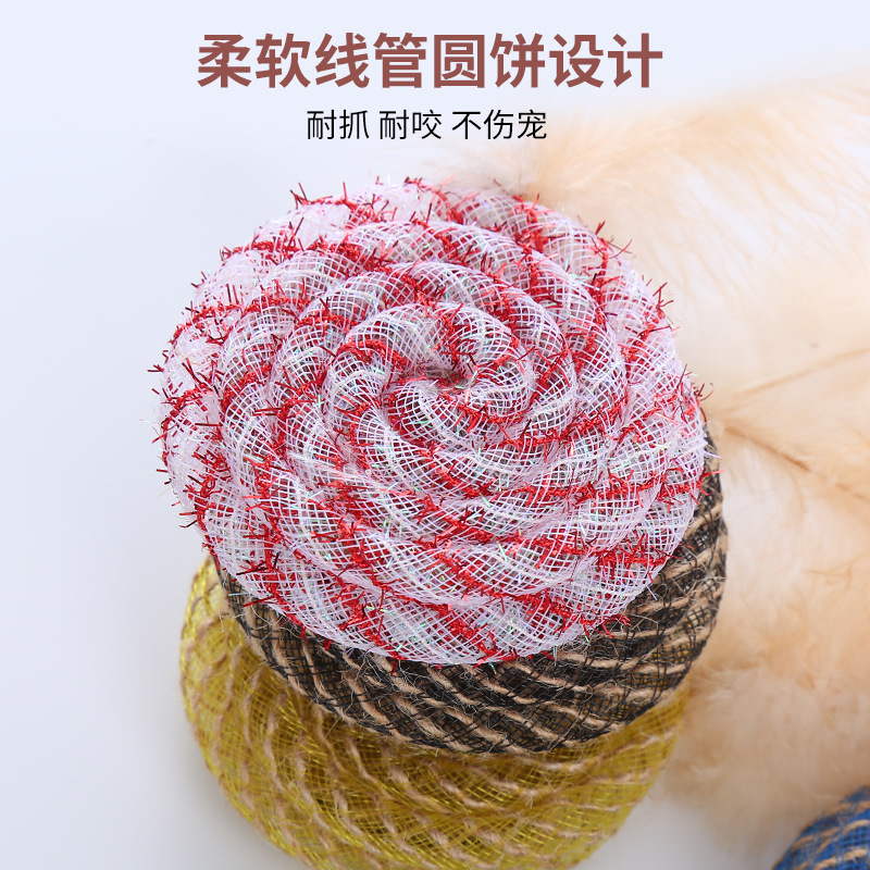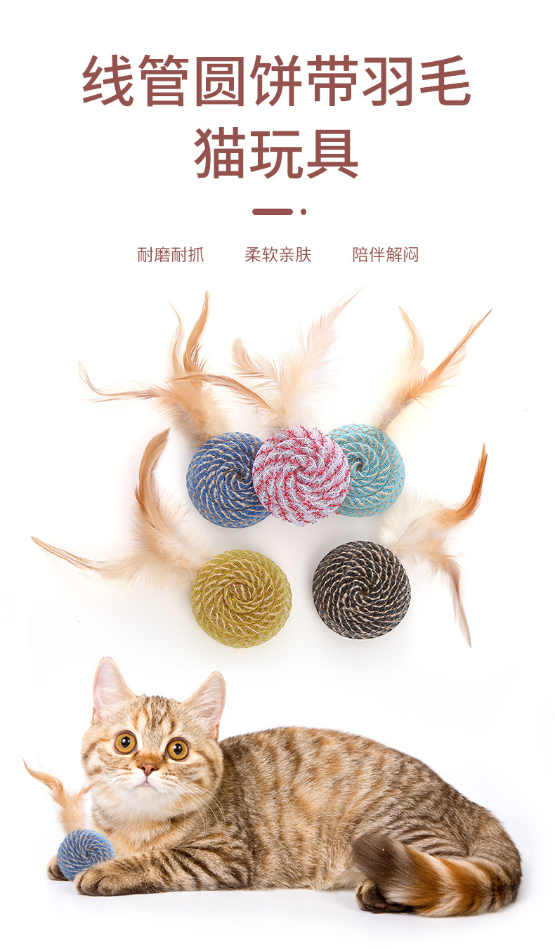 pet supplies in stock factory wholesale line tube round cake with feather toy self-hi scratch-resistant bite toy 中文版