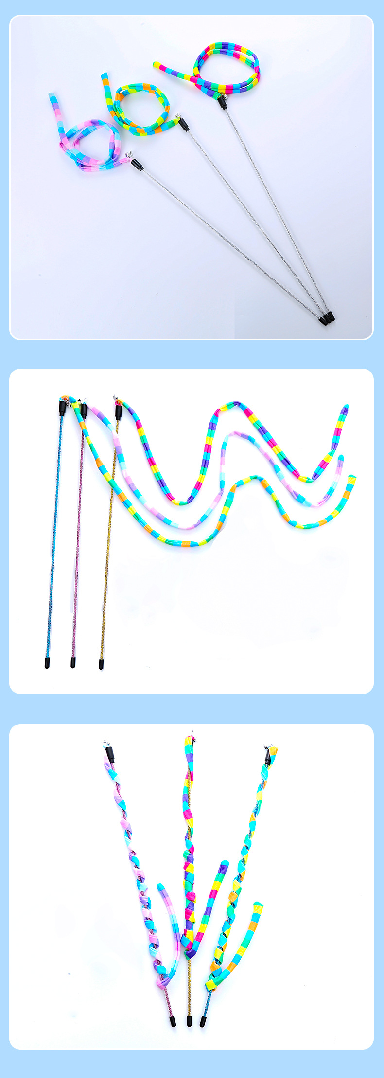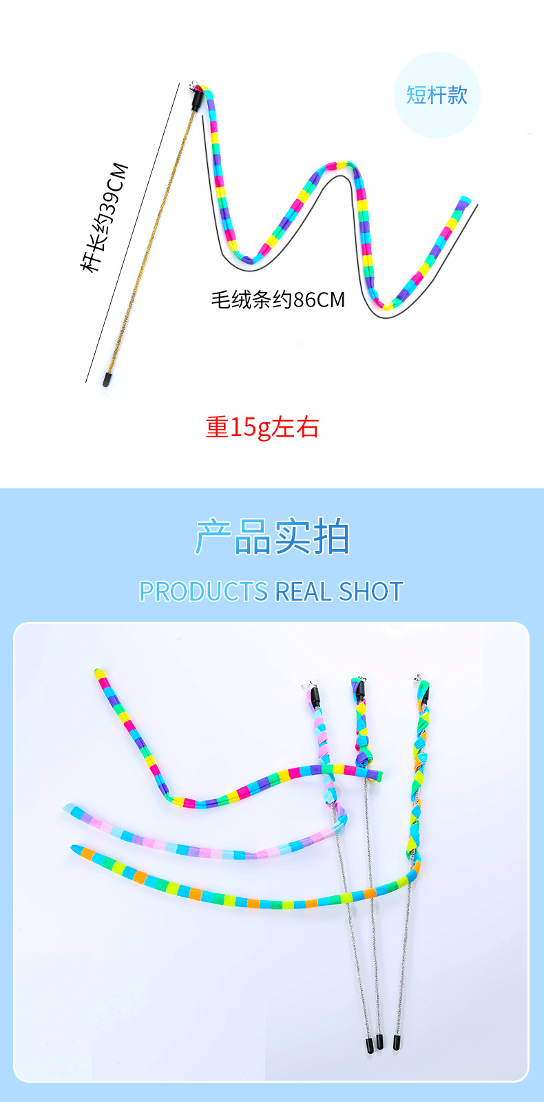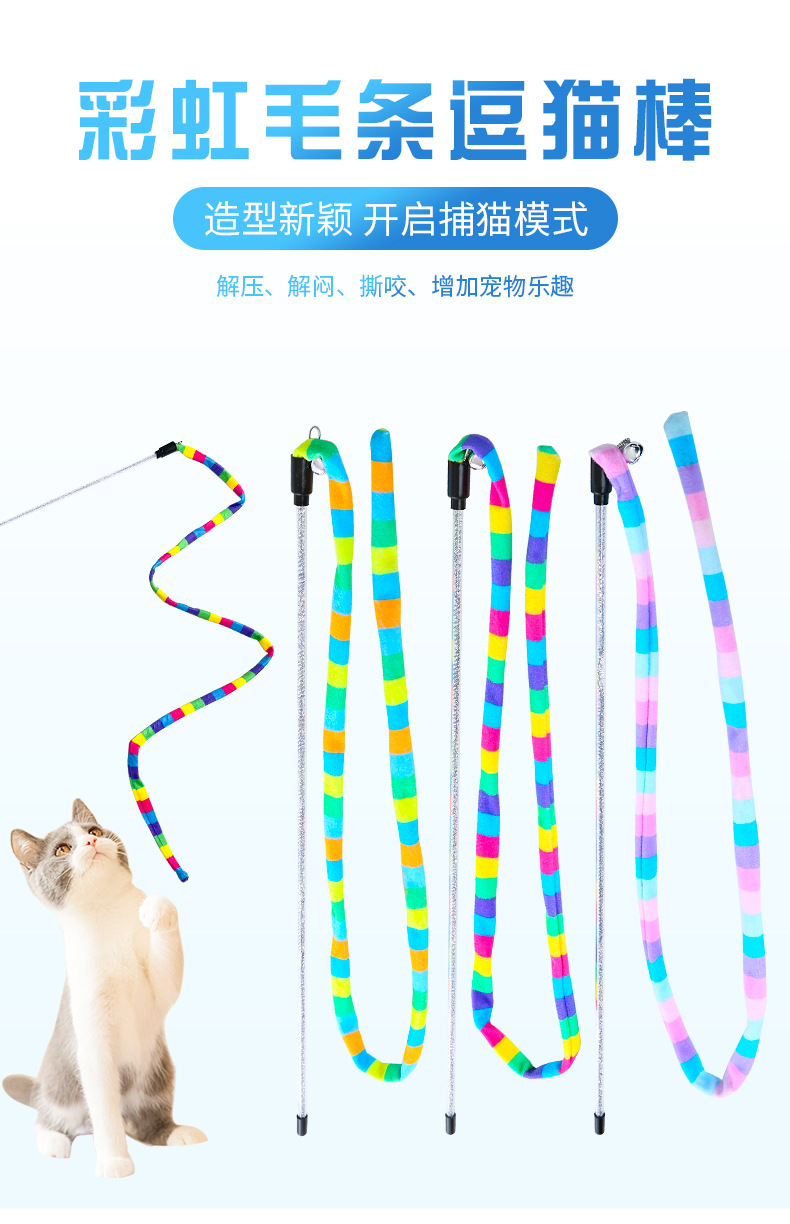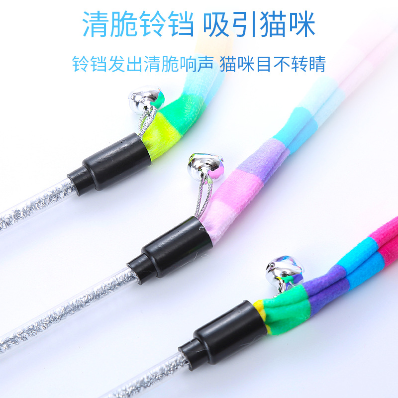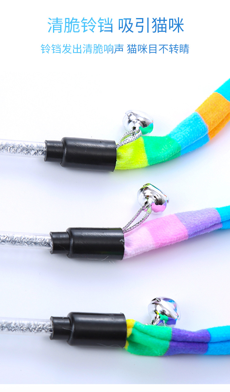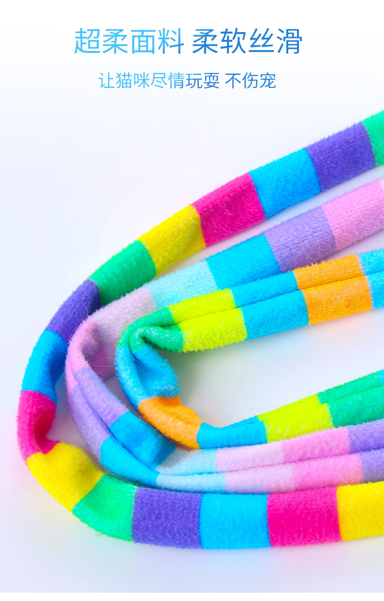 pet supplies toy macaron rainbow forest plush teaser with bell self-hi play toy 中文版