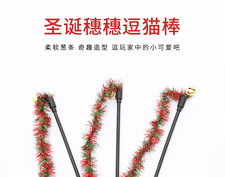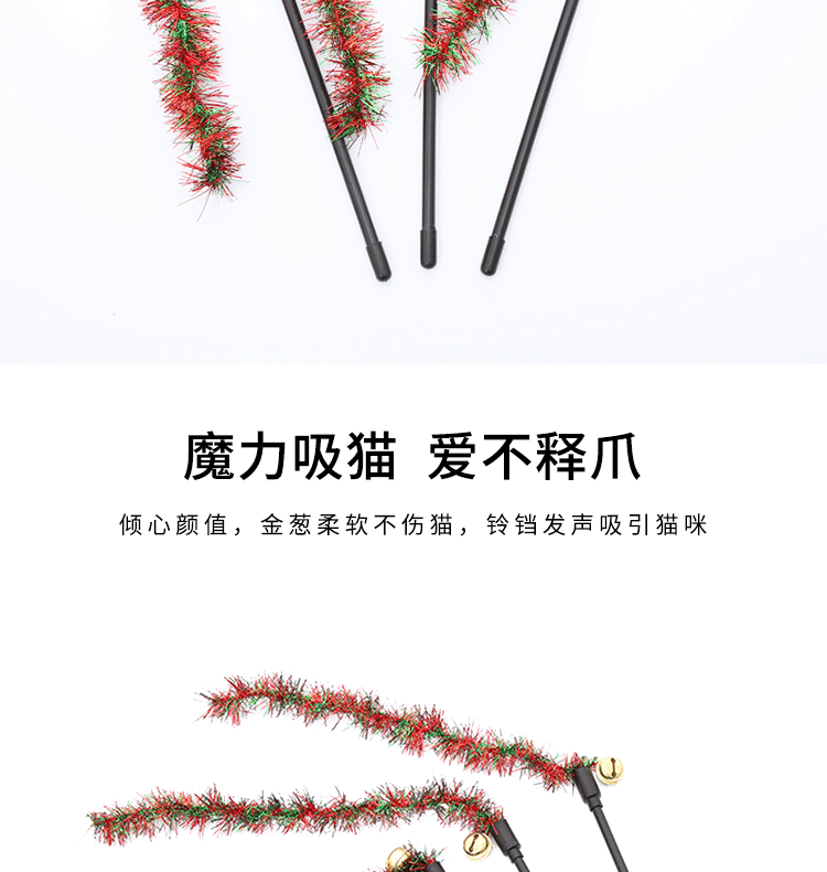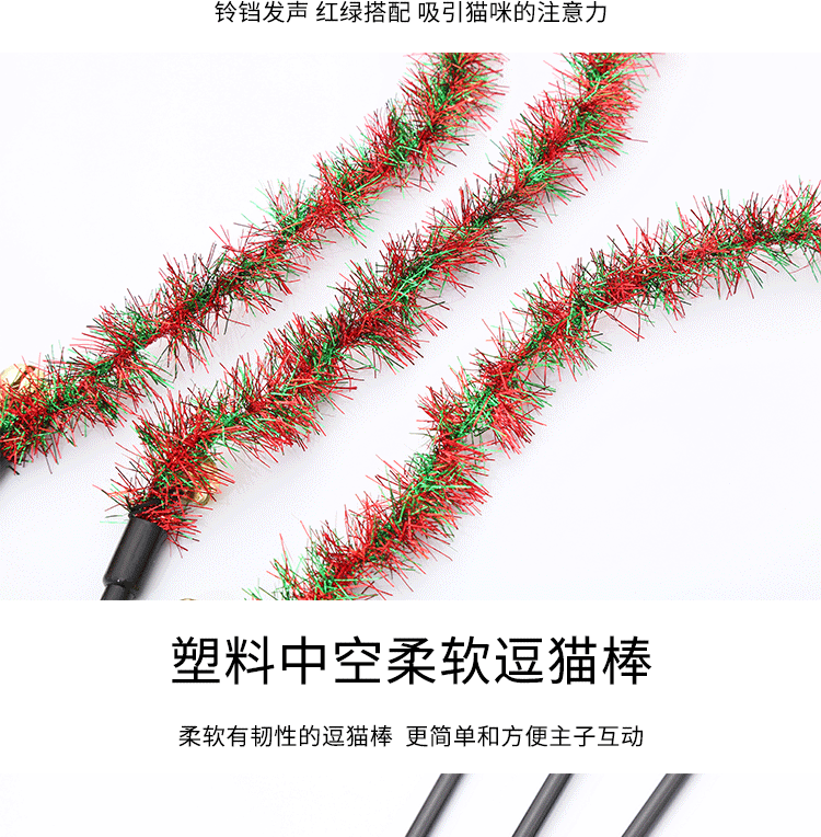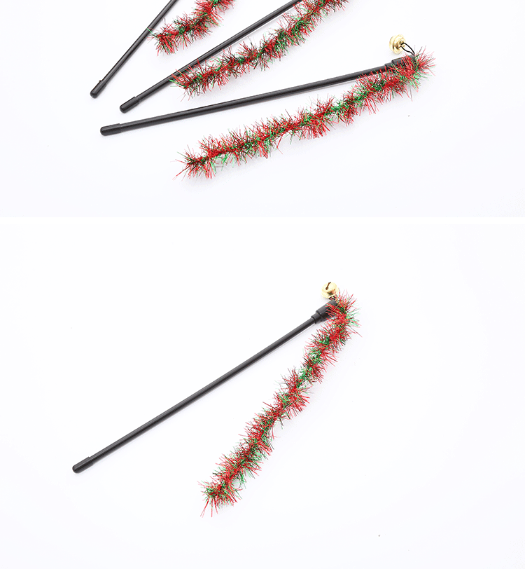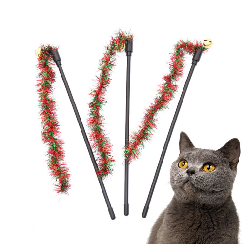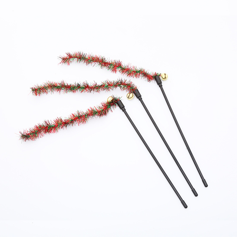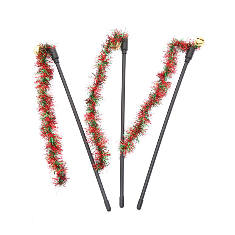 pet supplies wholesale christmas ribbon spike teaser with bell kitty toys self-hi interactive play toy 中文版