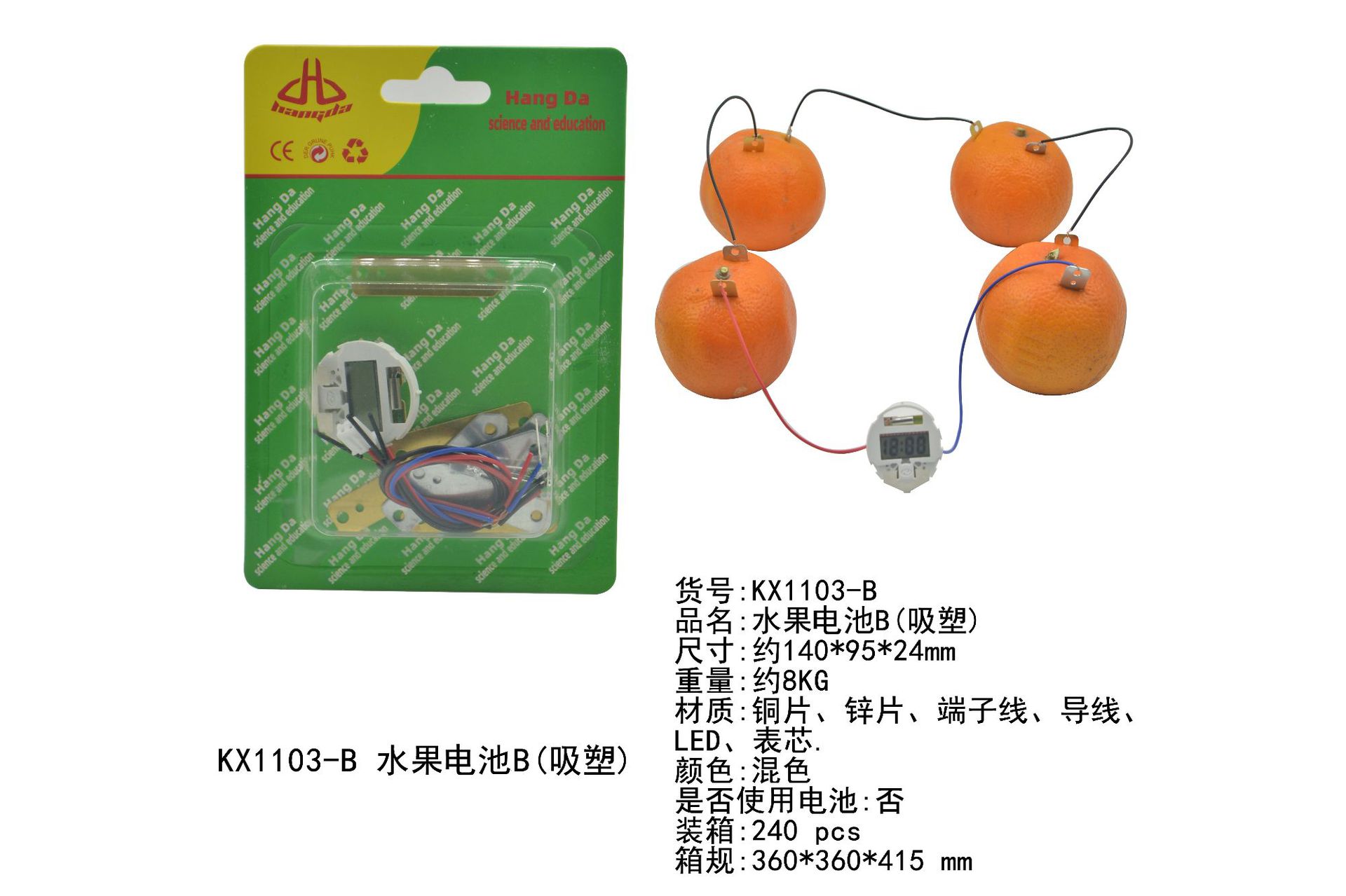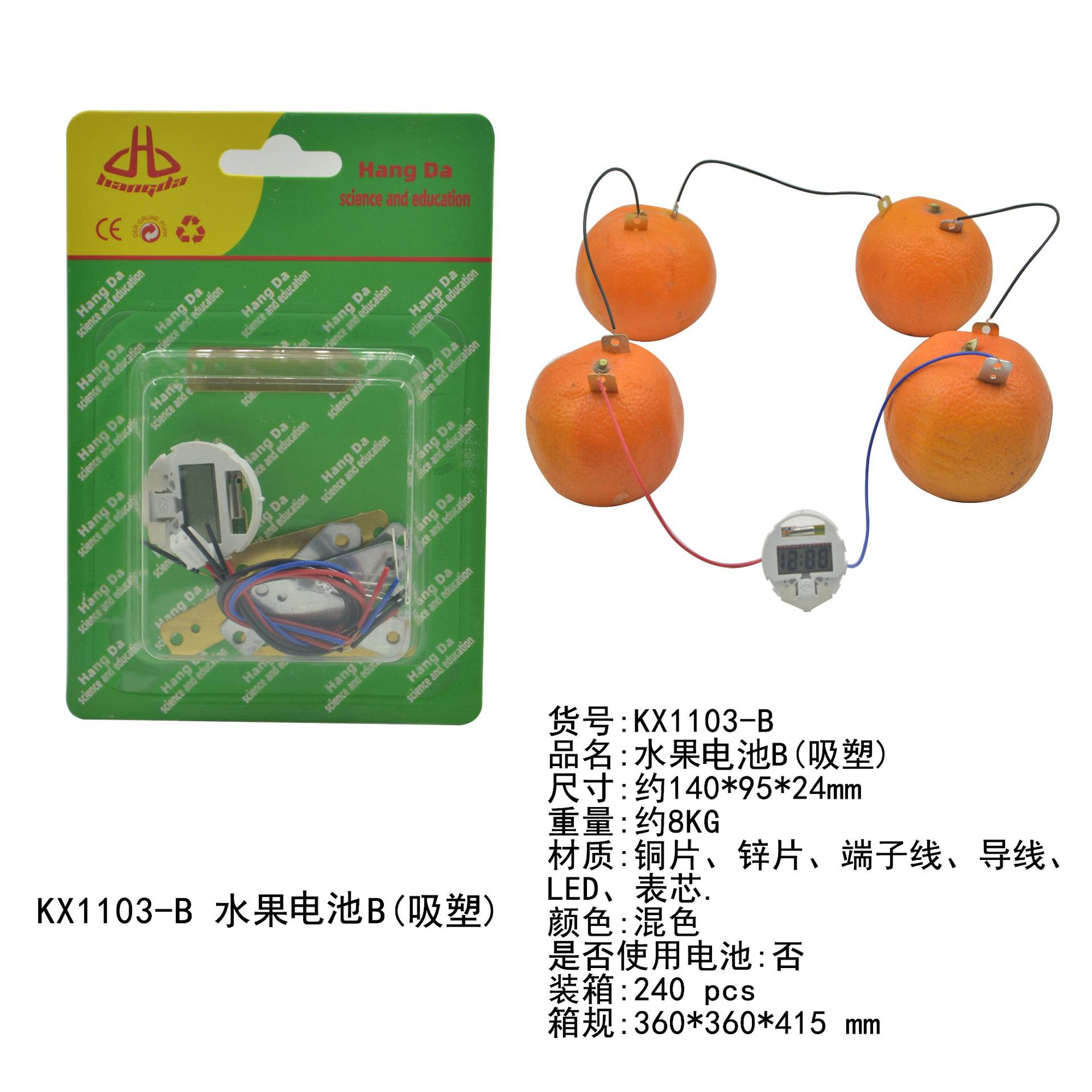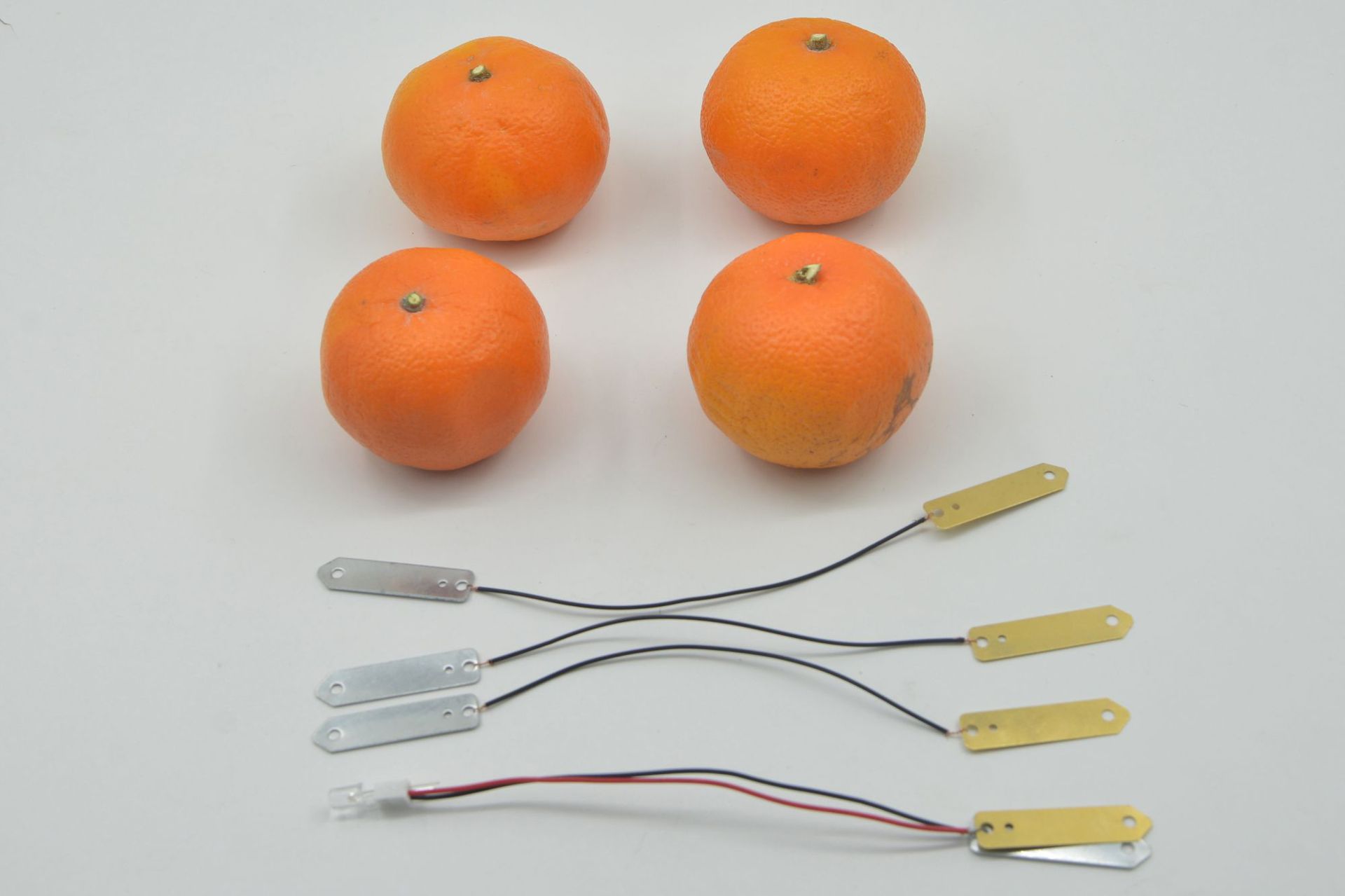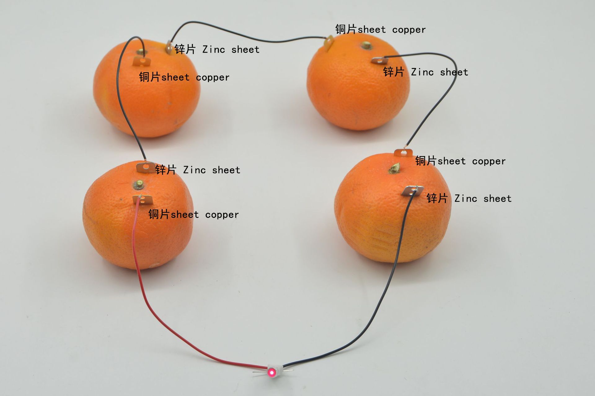 Material: copper sheets, zinc sheets, terminals, wires, LEDs