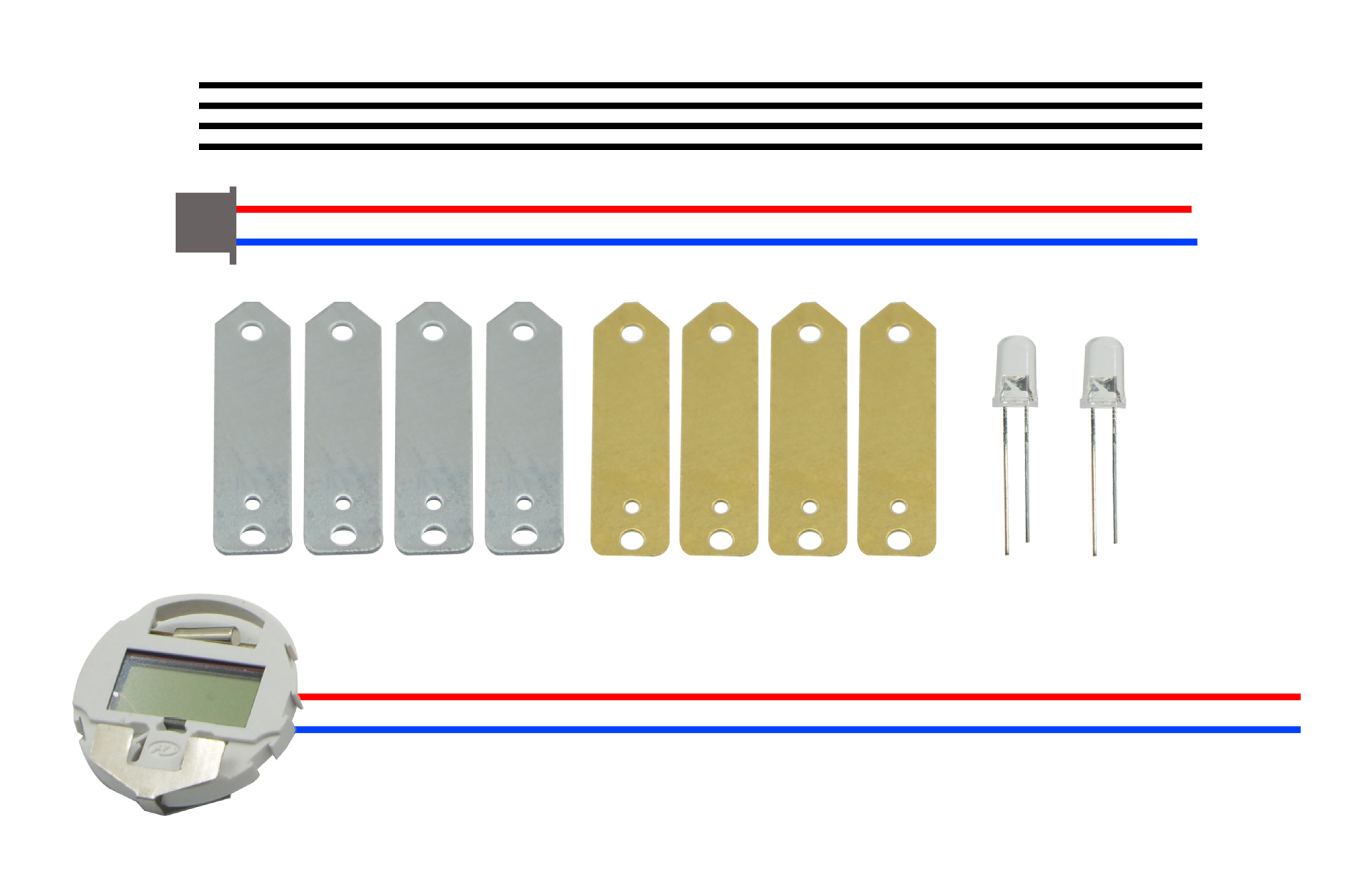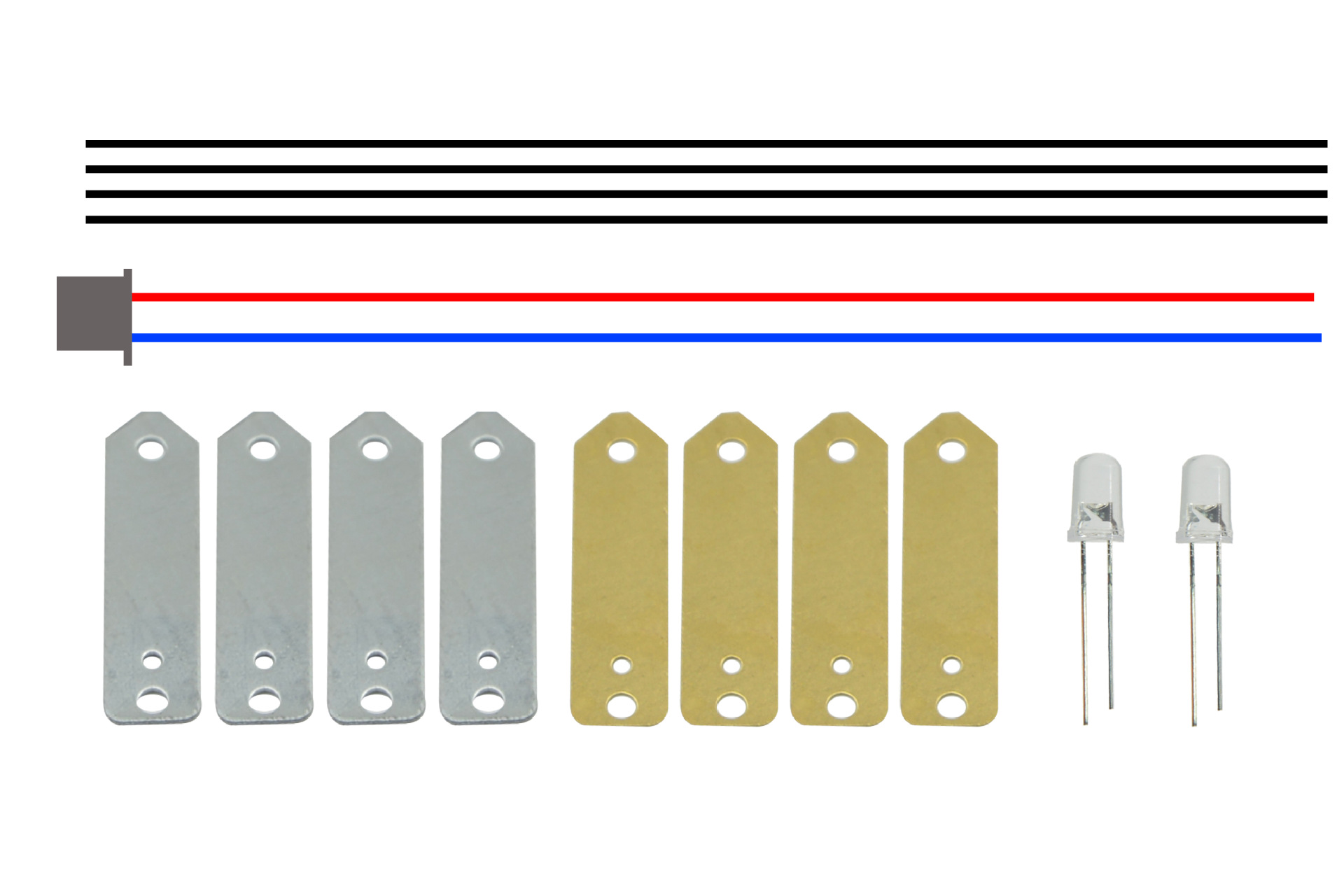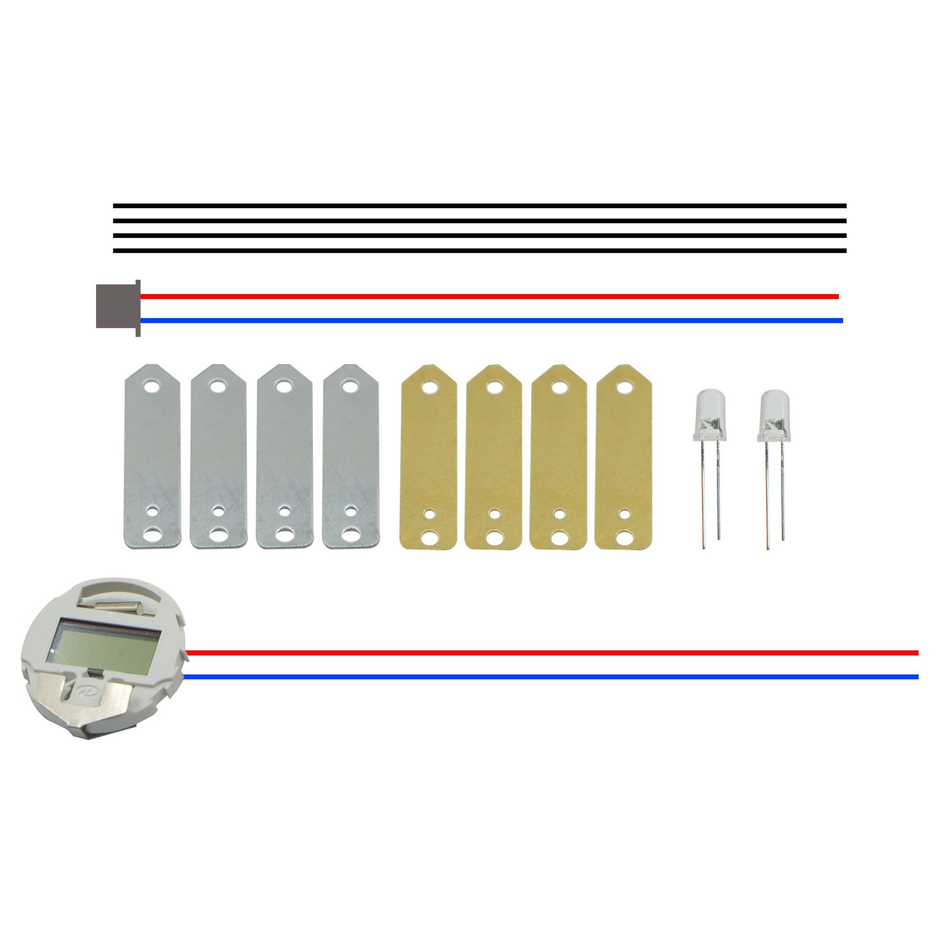 Material: copper sheets, zinc sheets, terminal wires, conductors, LEDs, and movement cores.