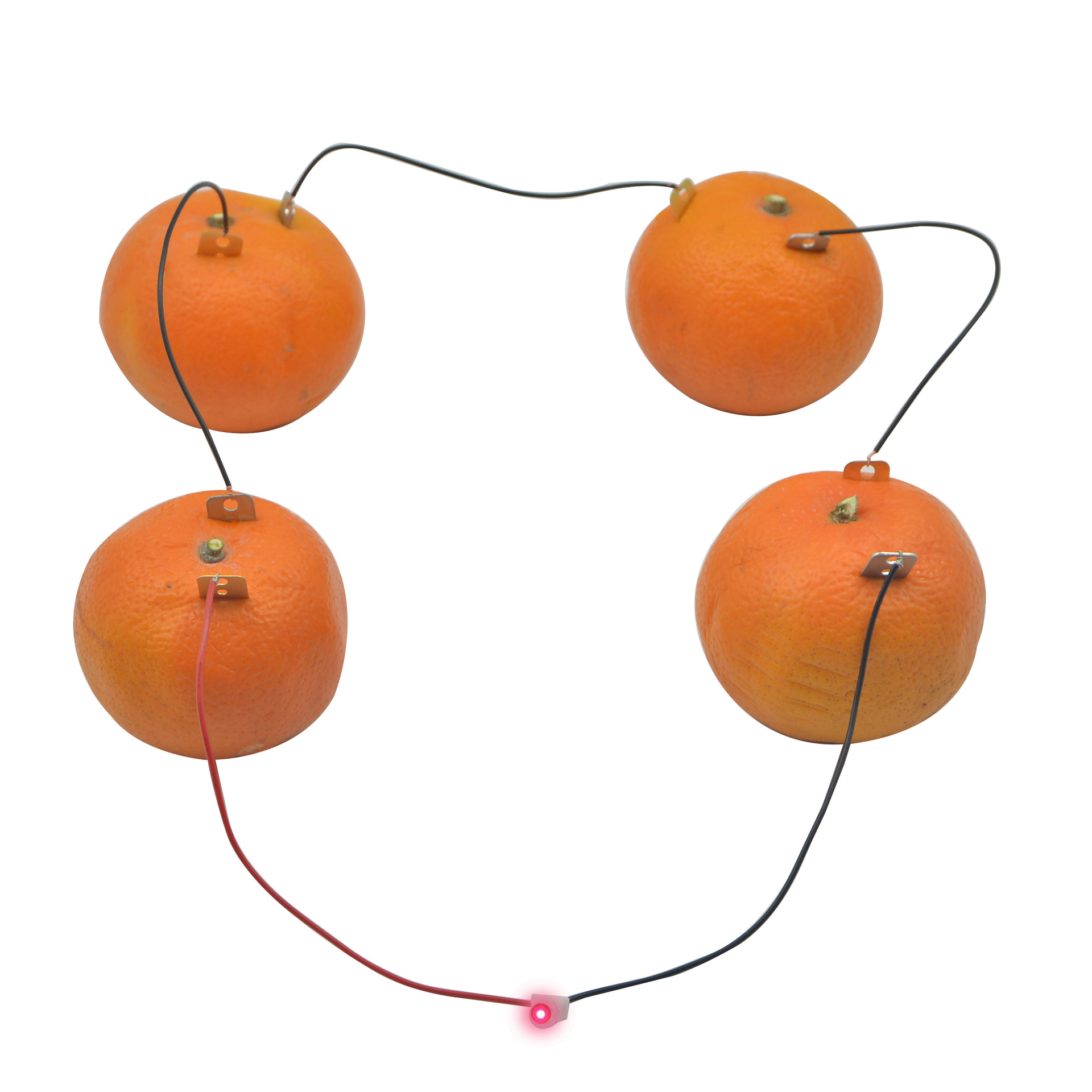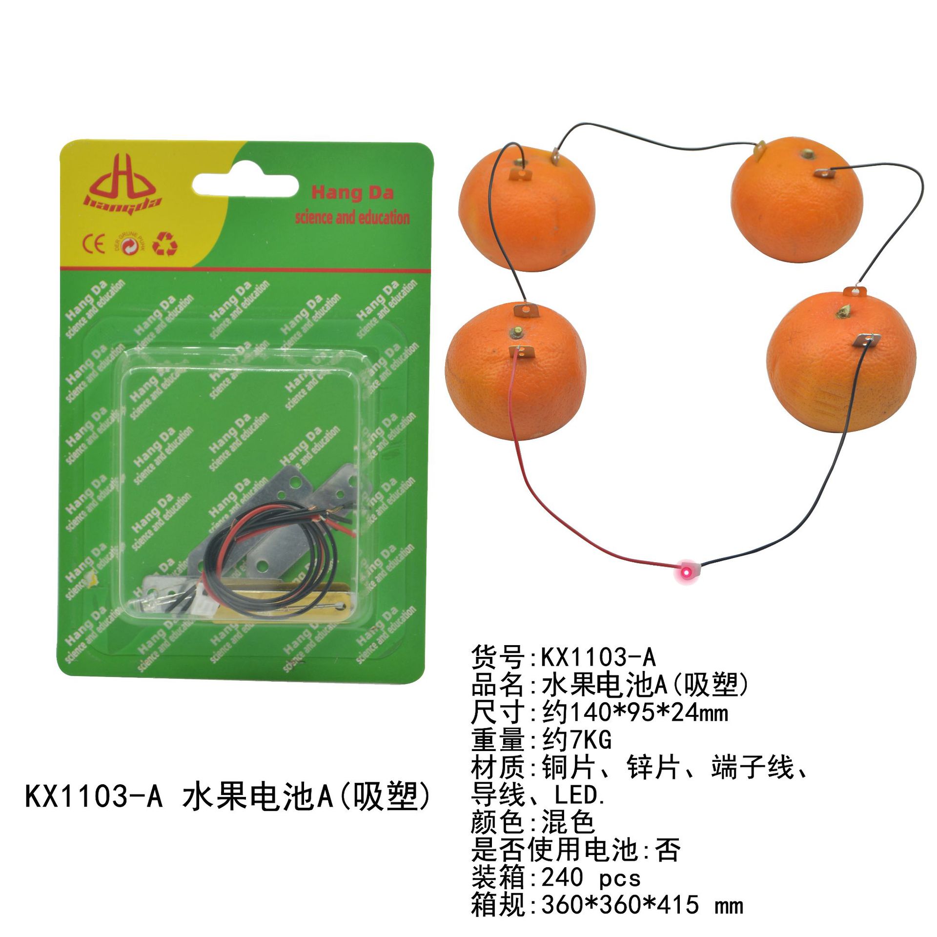 • Electrodes: In a fruit-based electricity generation device, two different metal plates are often inserted as electrodes, such as zinc plates and copper plates. The atomic structures of different metals are different, and they have different abilities to lose or gain electrons in an electrolyte solution.