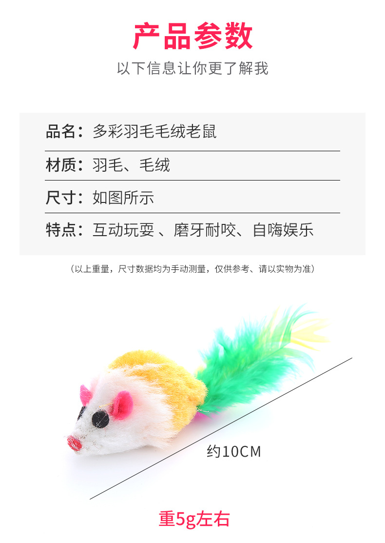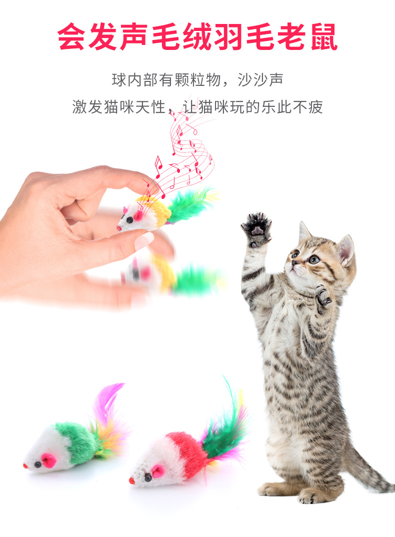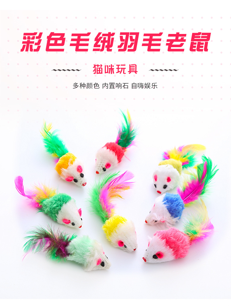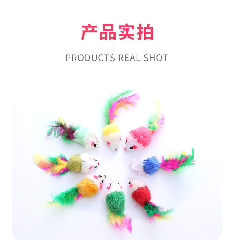 pet supplies manufacturer color plush feather mouse shape toy self-hi relieving stuffy interactive toy 中文版
