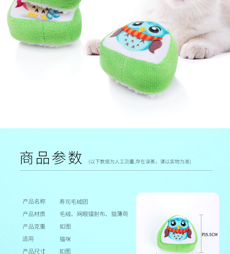 pet supplies wholesale cartoon owl catnip plush toy sushi shape self-hi relieving stuffy toy 中文版