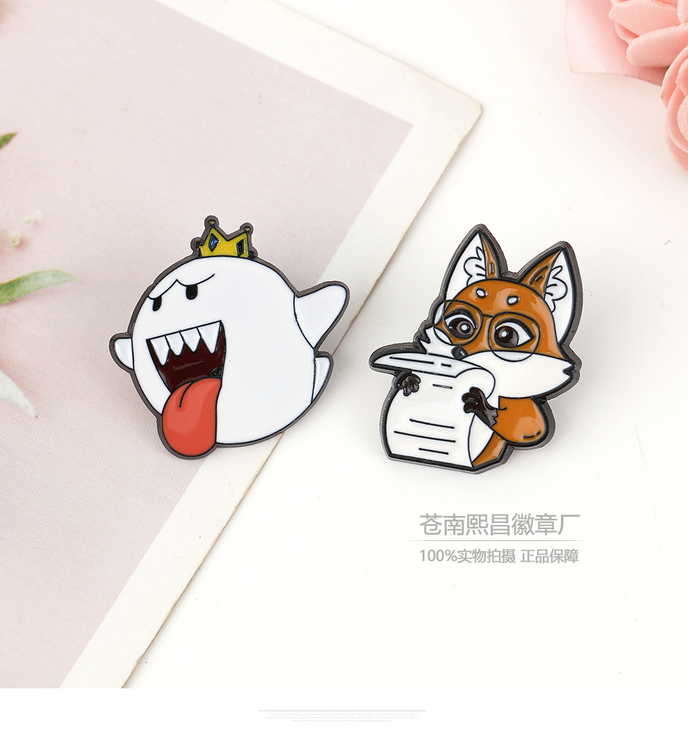 cartoon funny original mario shy ghost cute brooch anime golden m badge ins tide backpack ornament 中文版
