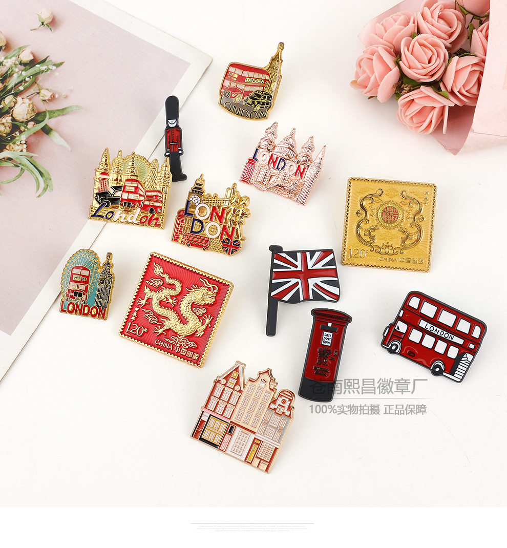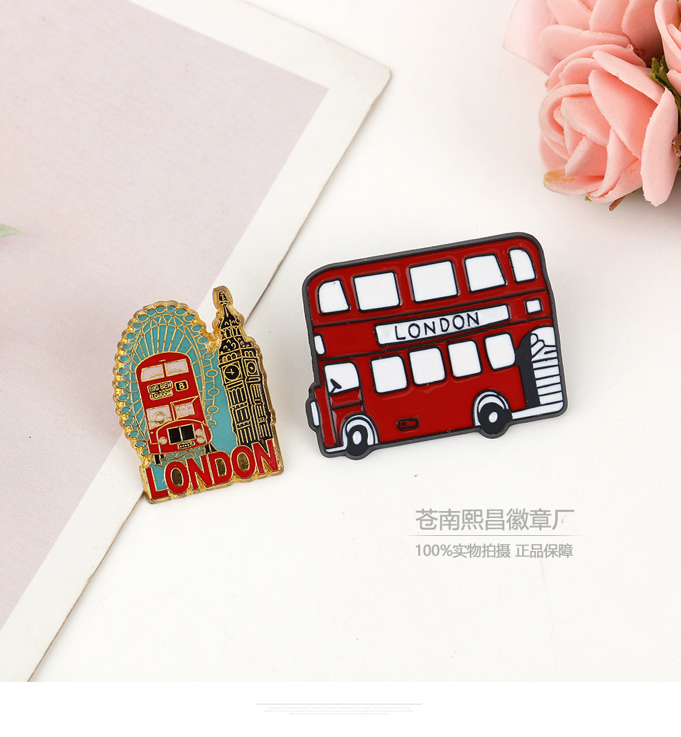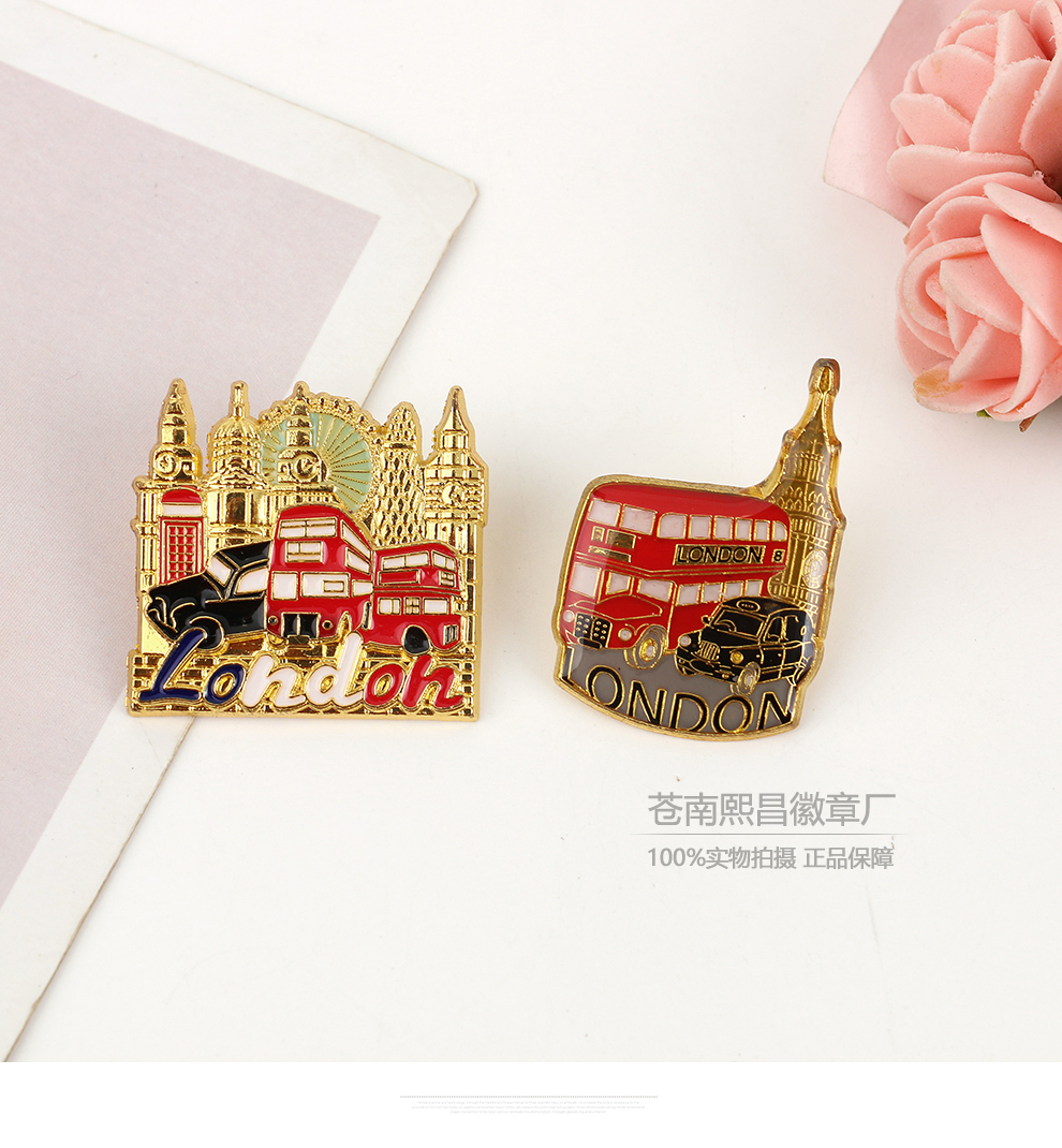 fashion creative nutcracker soldier bus tourist building modeling brooch cartoon golden m badge accessories 中文版