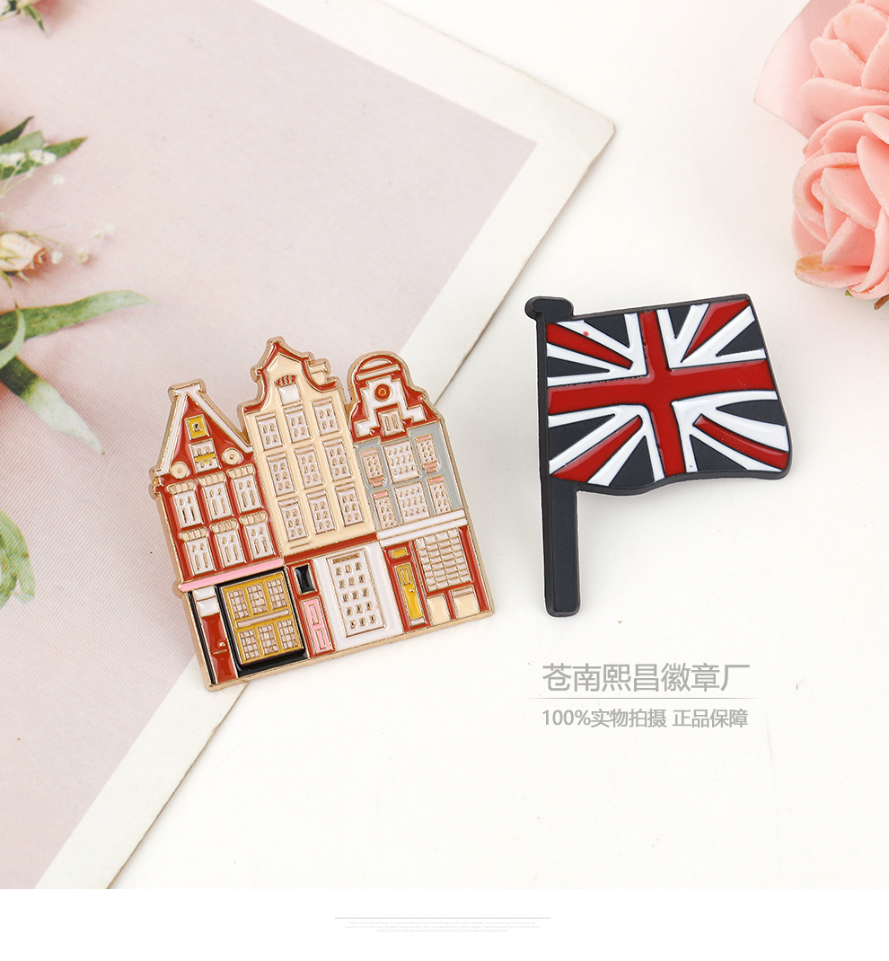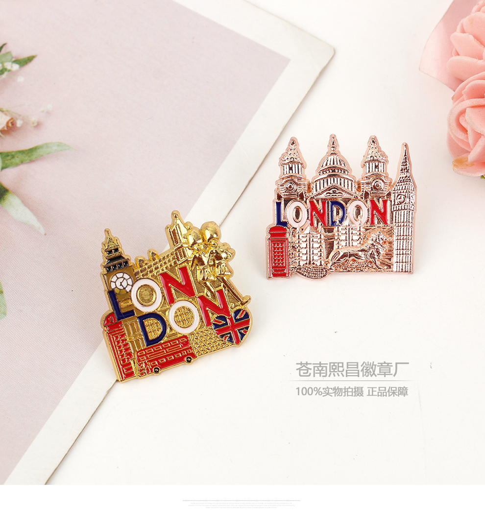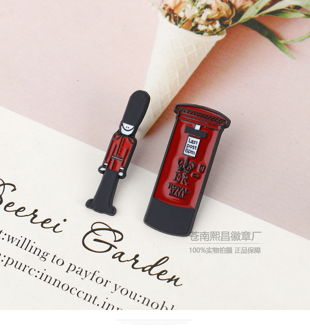 fashion creative nutcracker soldier bus tourist building modeling brooch cartoon golden m badge accessories 中文版