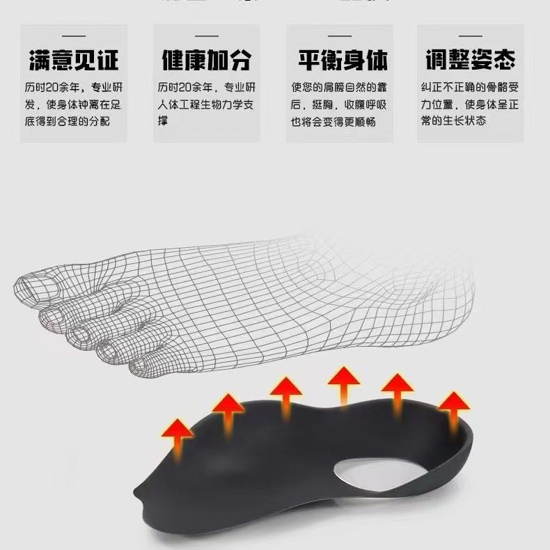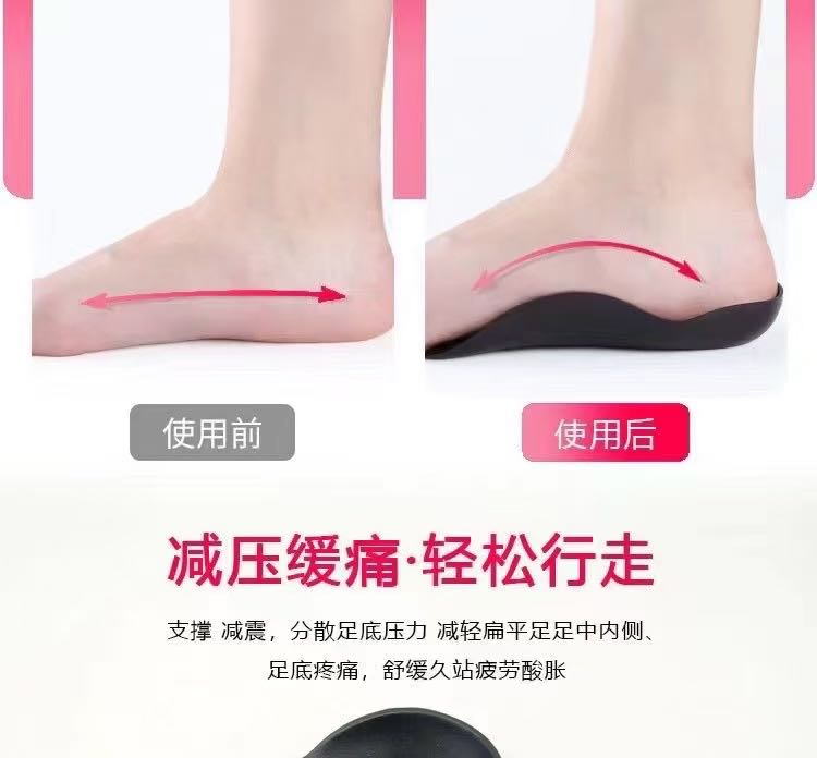 单色足弓垫有足弓支撑更贴合脚掌正确护足,它的后跟稳固,预防足弓痛,有效高弹足弓不易塌陷,能起到很好的减震缓冲作用。让您站立和走路时脚掌更舒适