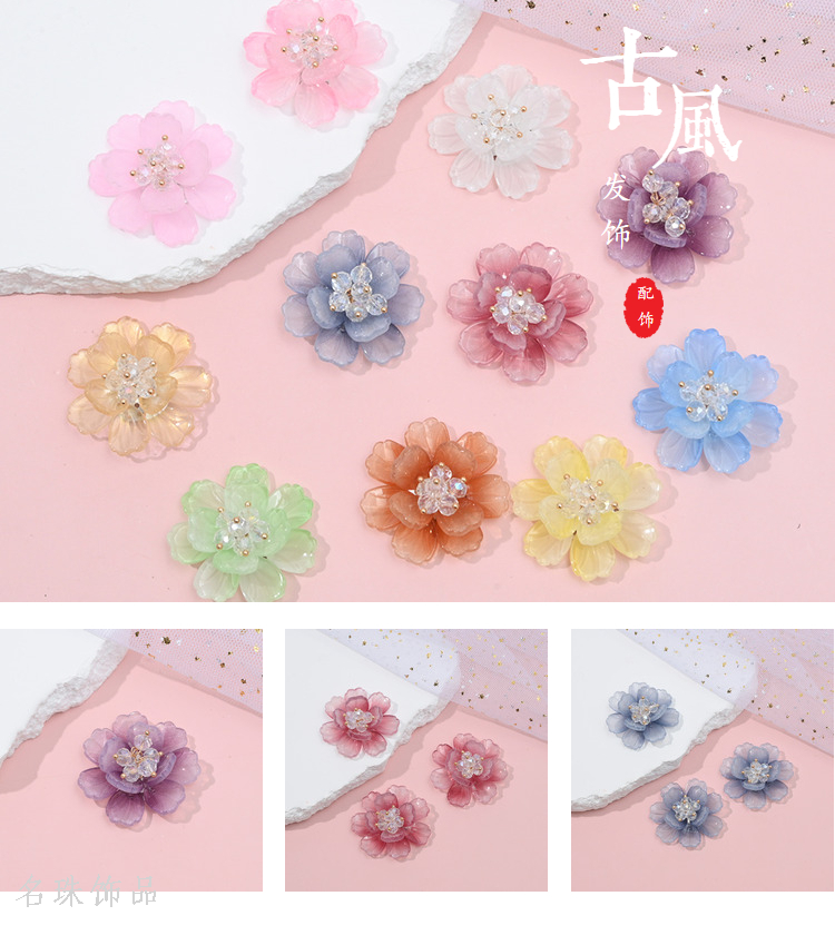 古风汉服仙气双层琉璃花朵diy手工编织串珠发夹发饰耳饰服装辅料批发