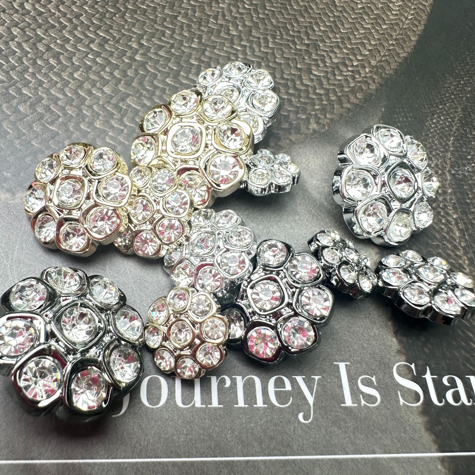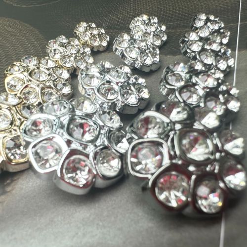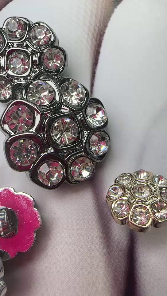 metal full diamond high-end coat fur coat accessories silver rhinestone flower classic style exquisite buttons 中文版