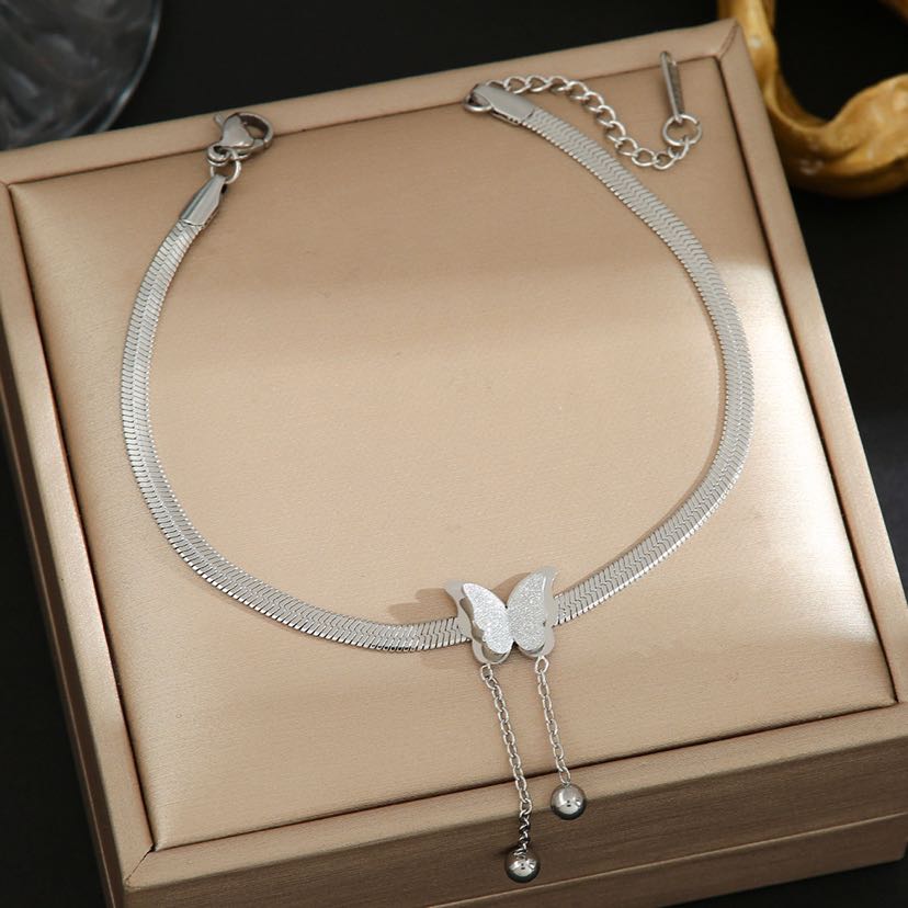 high-grade fashion titanium steel butterfly tassel bracelet female tik tok online sensation ins light luxury temperament blade chain bracelet 中文版