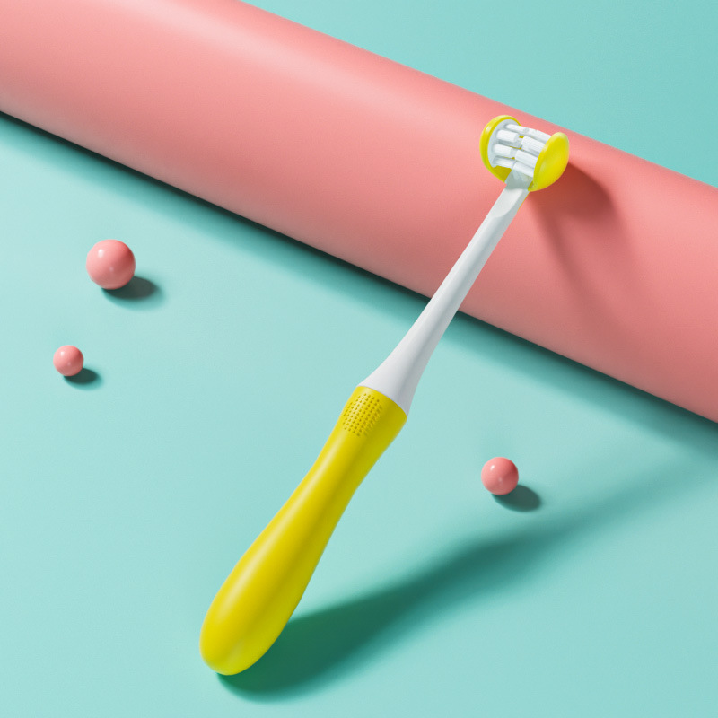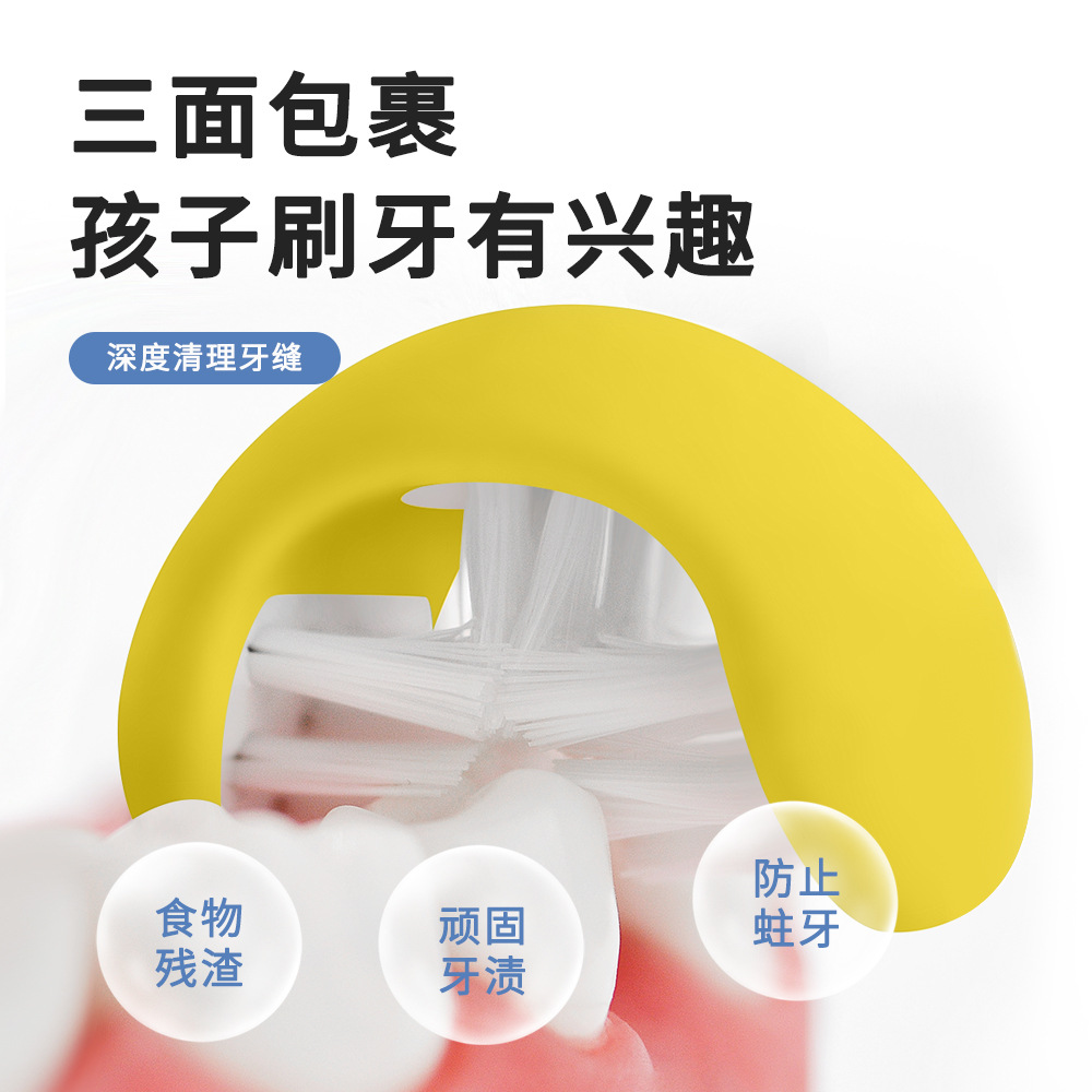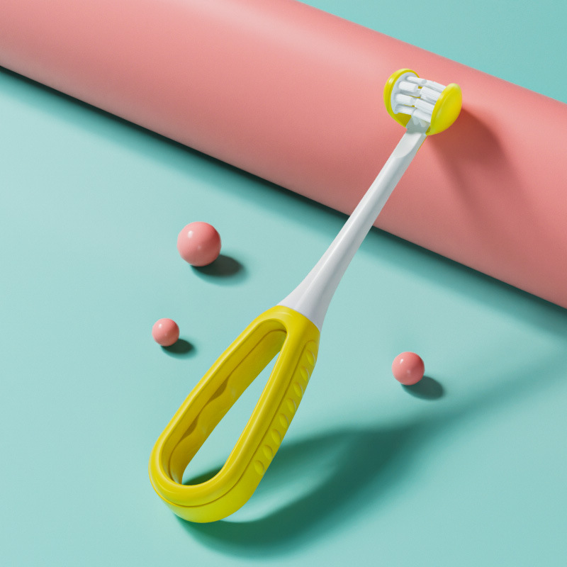 yellow three-sided toothbrush [1-6 years old] c8
