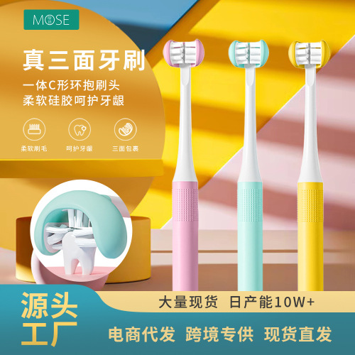 pink three-sided toothbrush adult c1