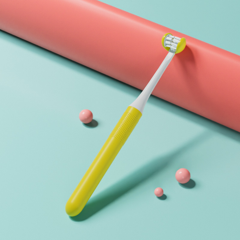 yellow three-sided toothbrush adult c1