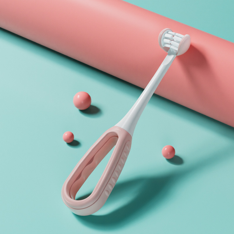 pink three-sided toothbrush [3-12 years old] c2