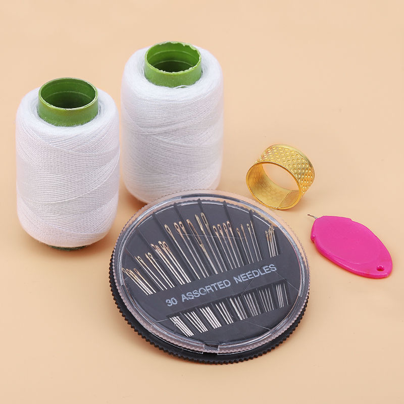 white thread +16 needles + thimble + needle-threader
