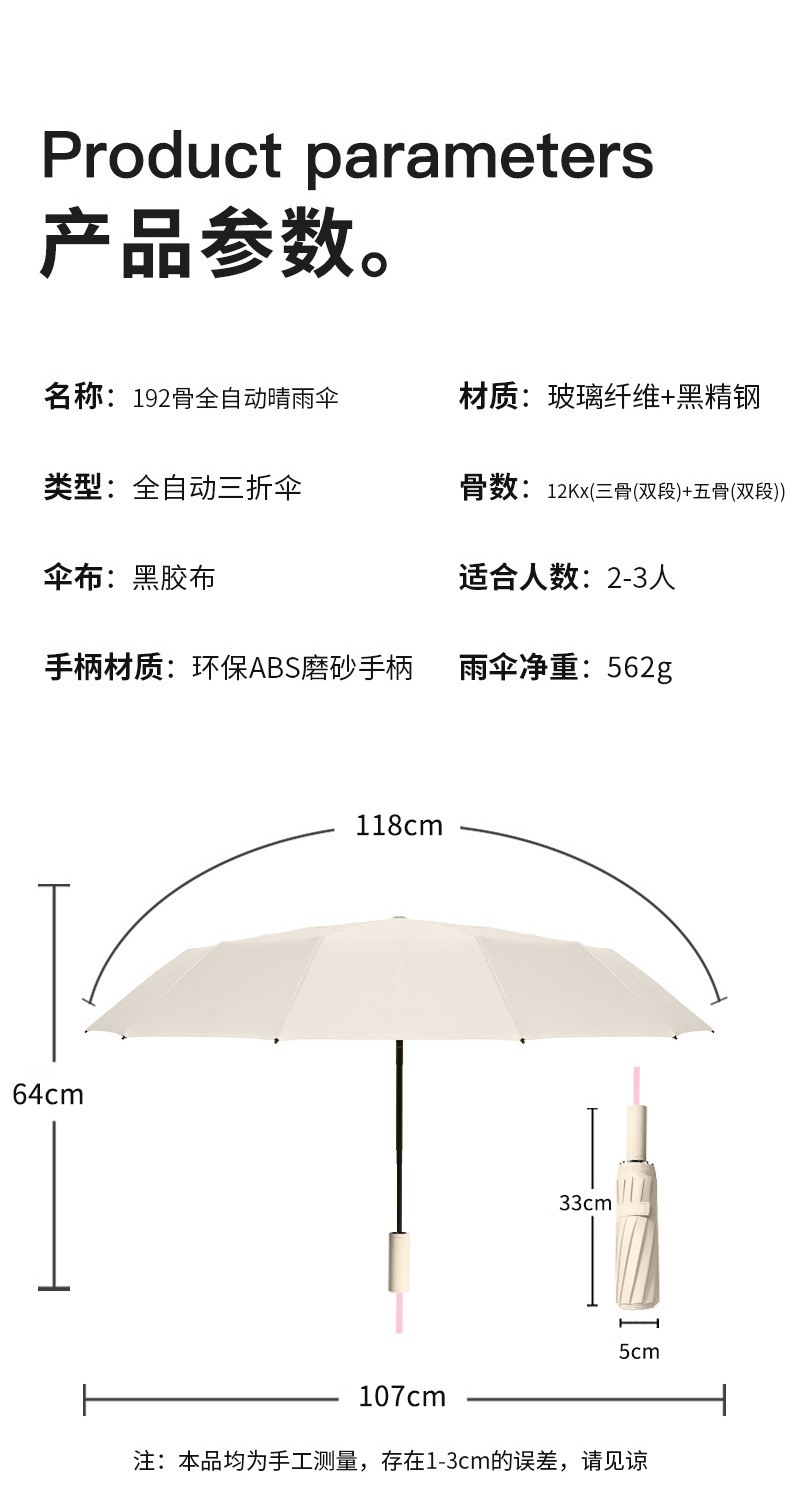 192 bones [thickened vinyl sun protective umbrella for two persons] wutong rice/automatic