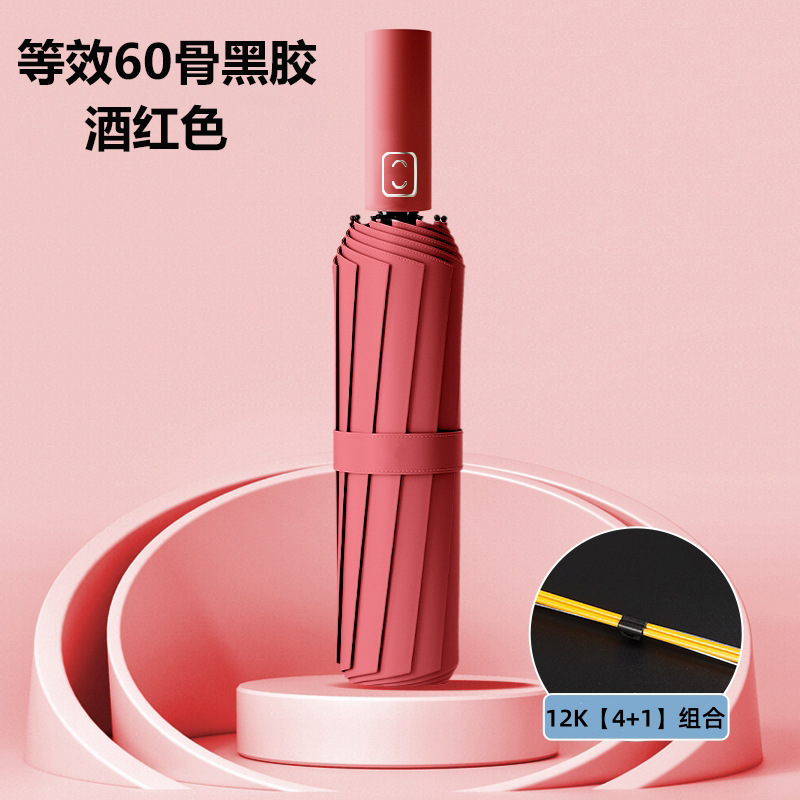 60 bones [thickened vinyl sun protective umbrella for two persons] wine red/automatic