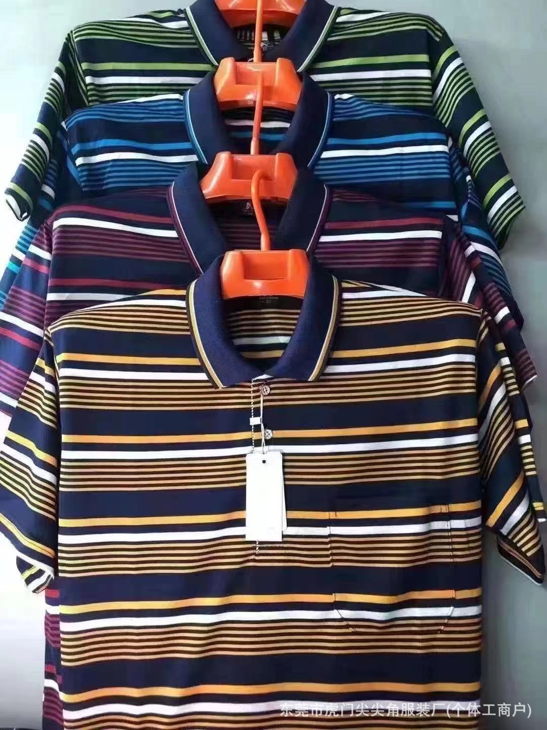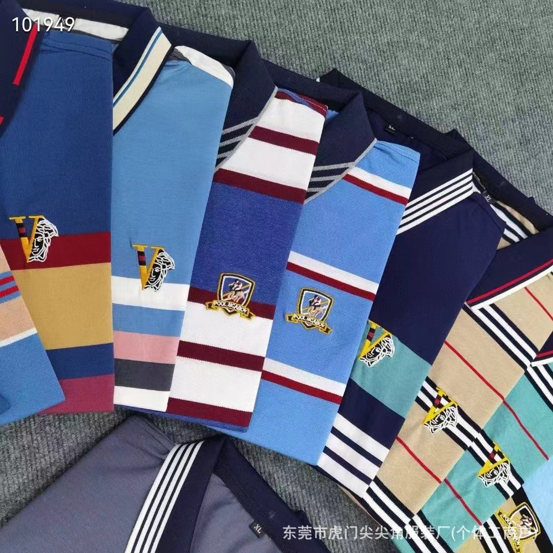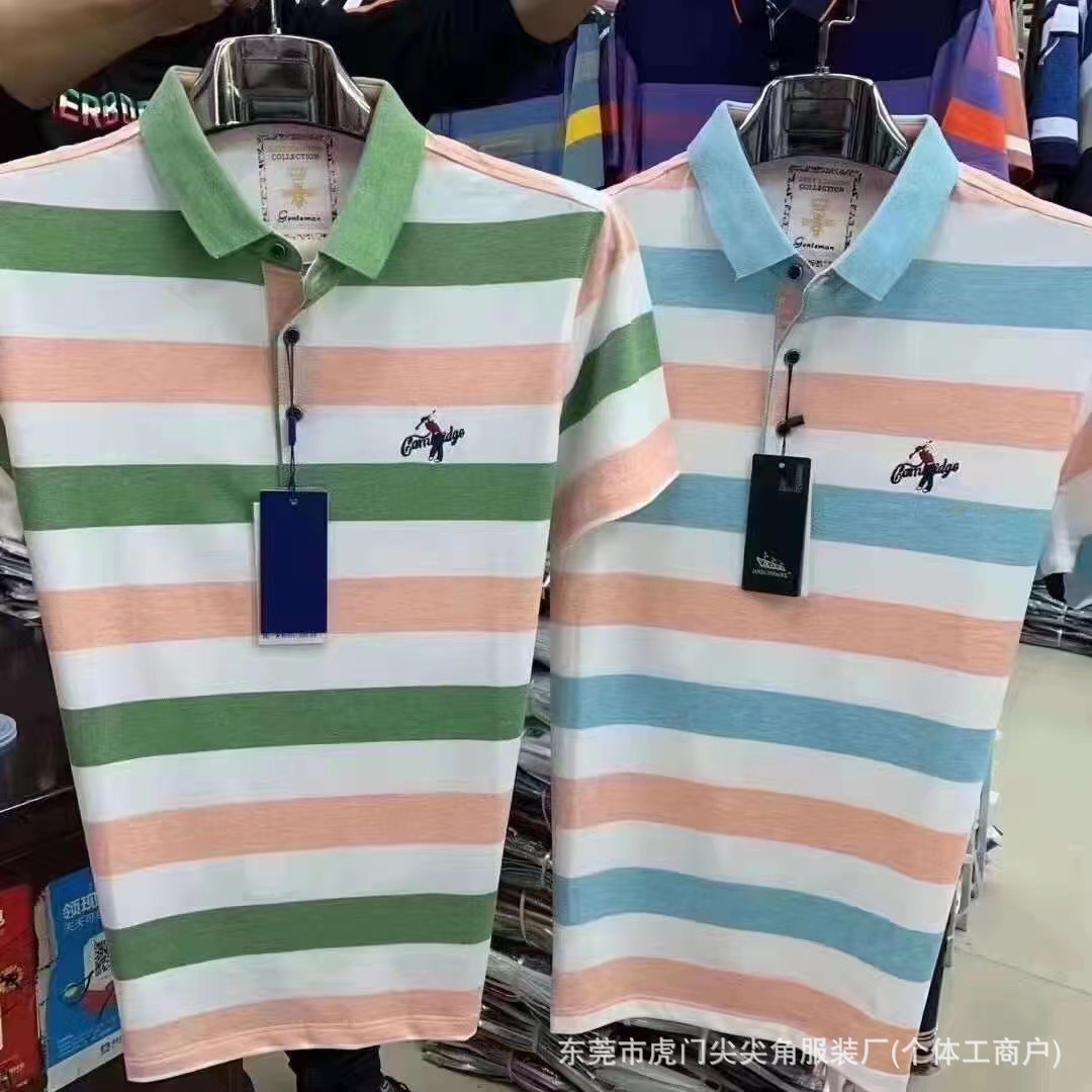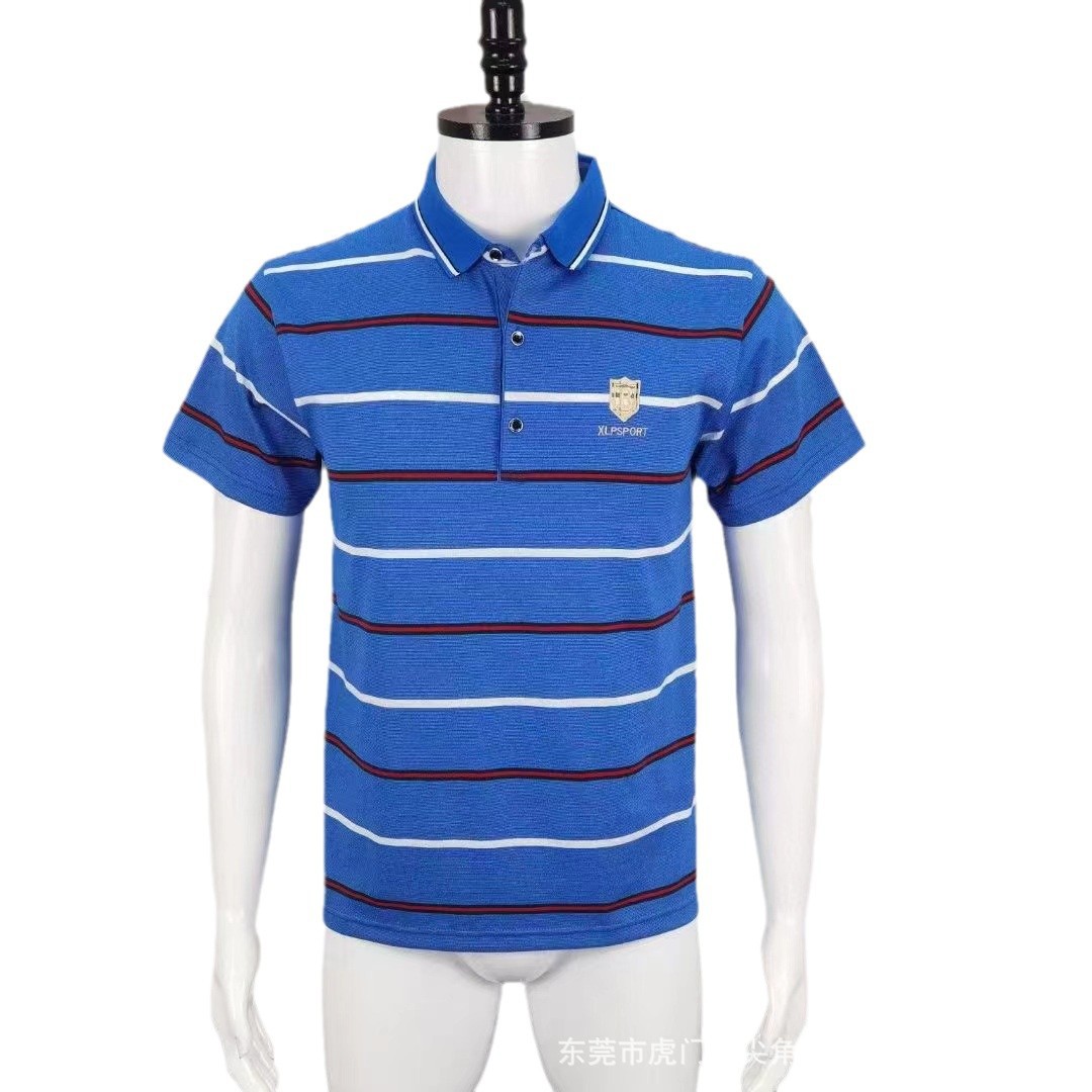 business suit embroidered t-shirt summer new middle-aged men's striped casual short-sleeved lapel slim-fit fashion 中文版
