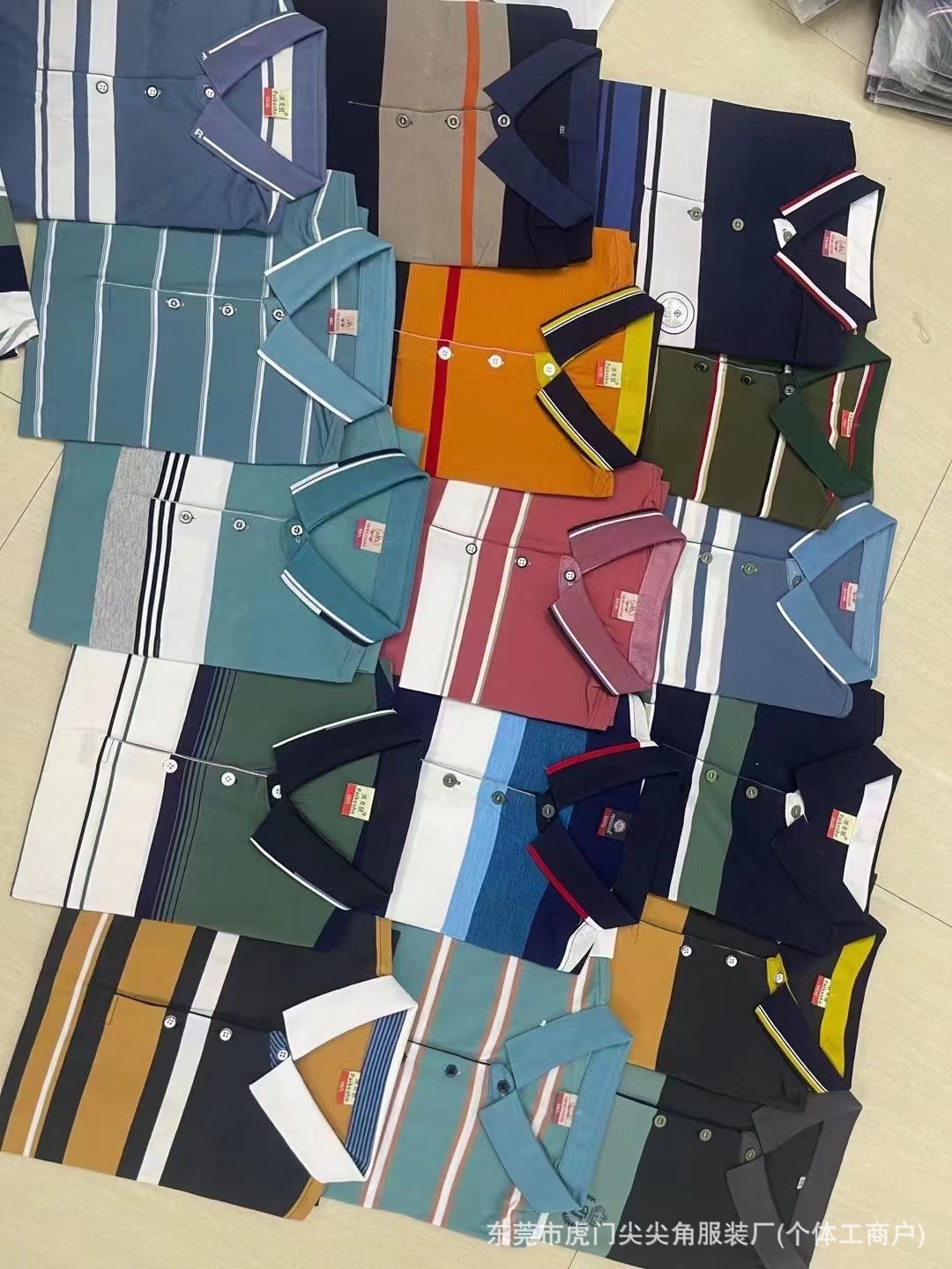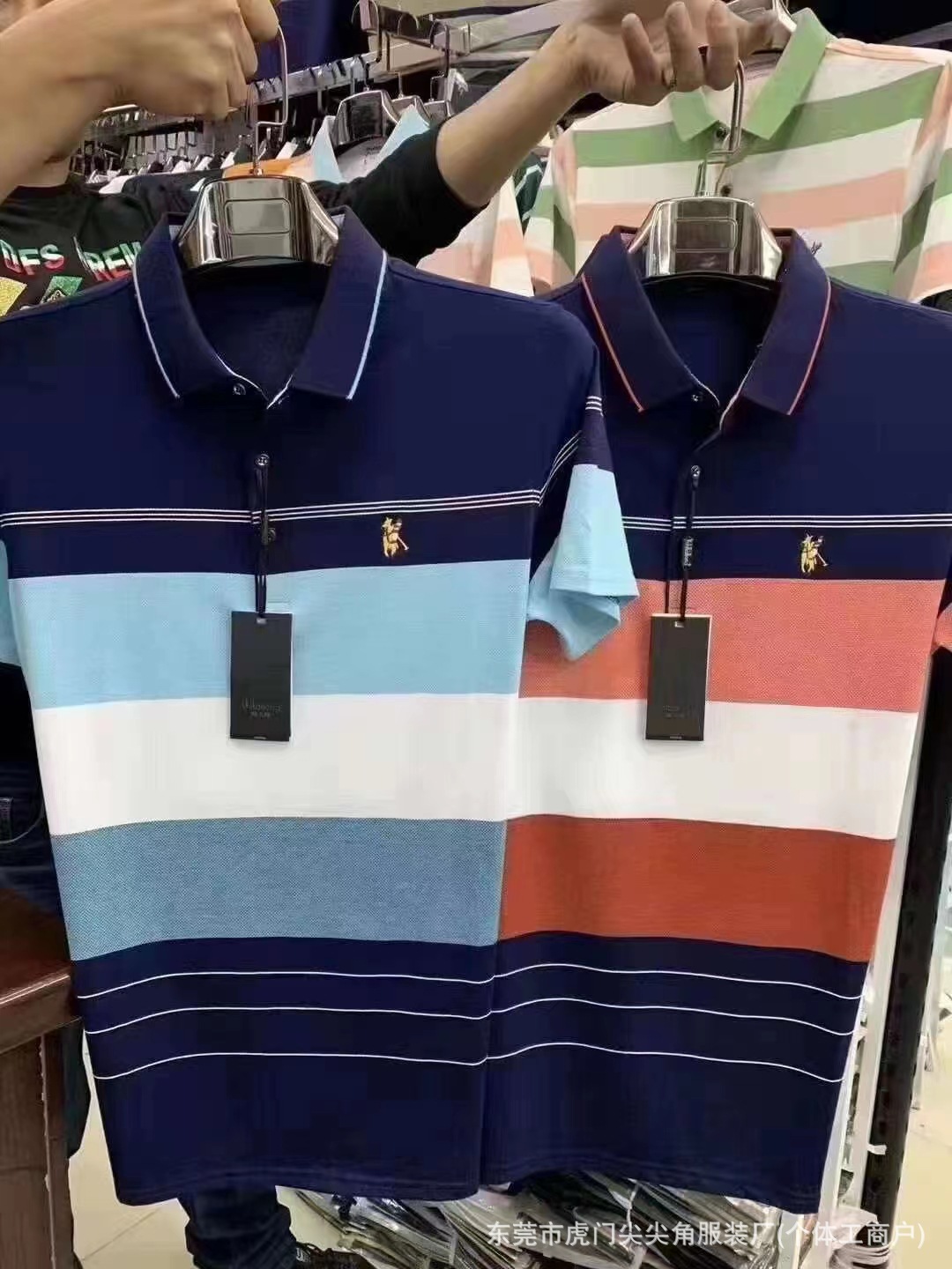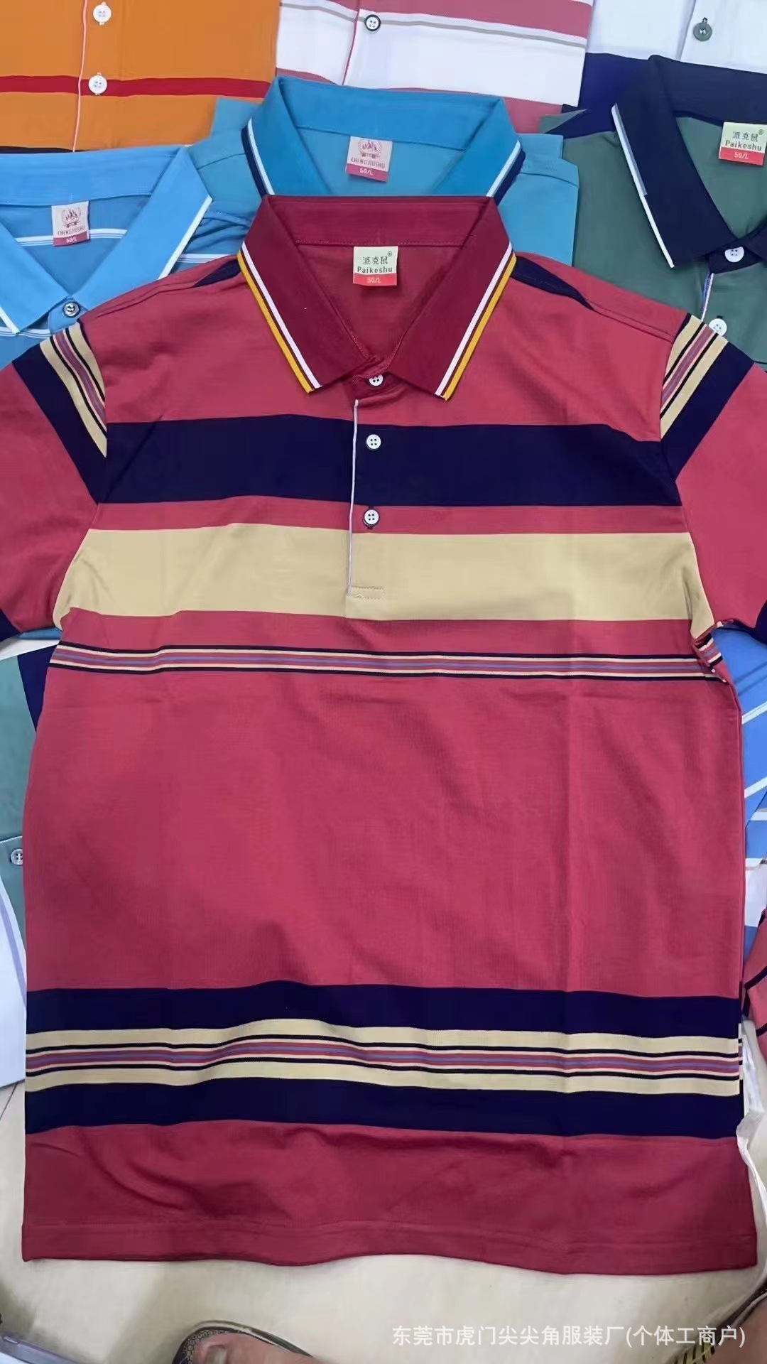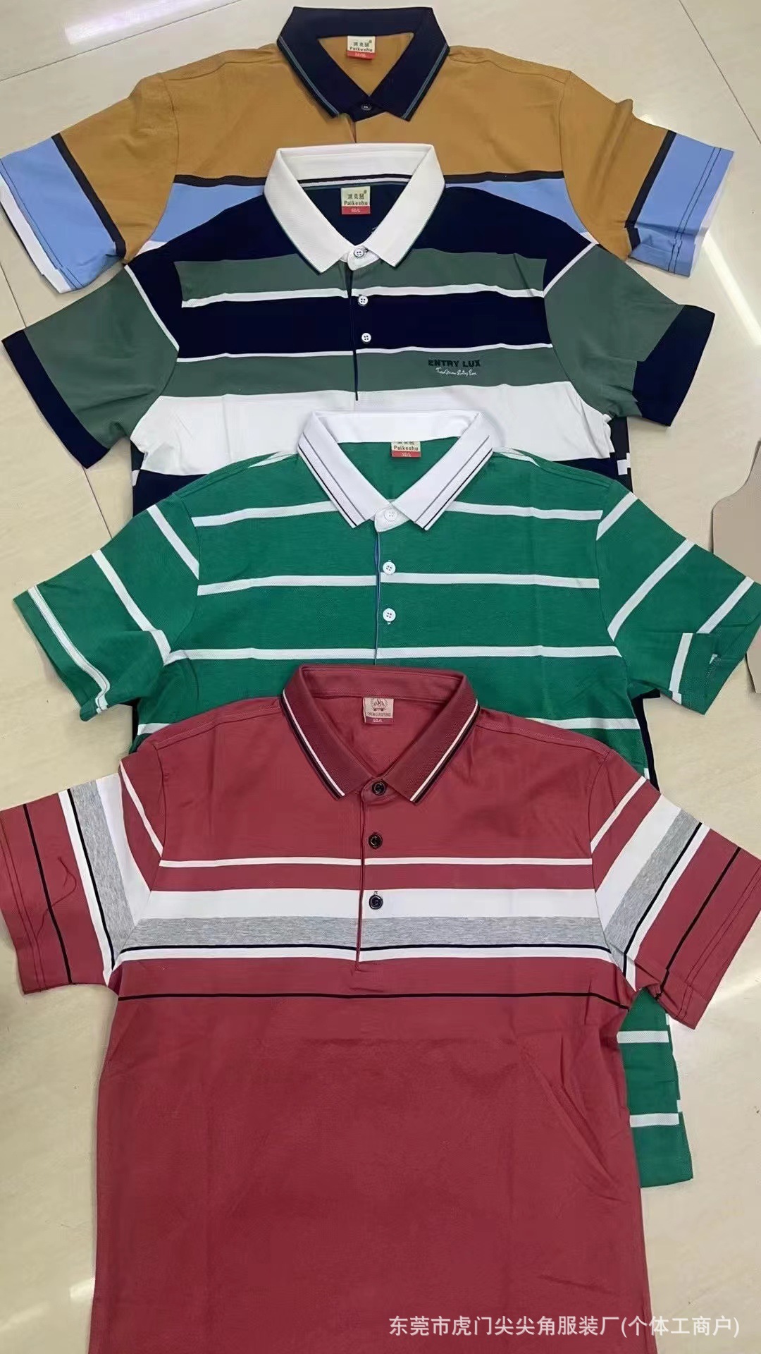 business suit embroidered t-shirt summer new middle-aged men's striped casual short-sleeved lapel slim-fit fashion 中文版