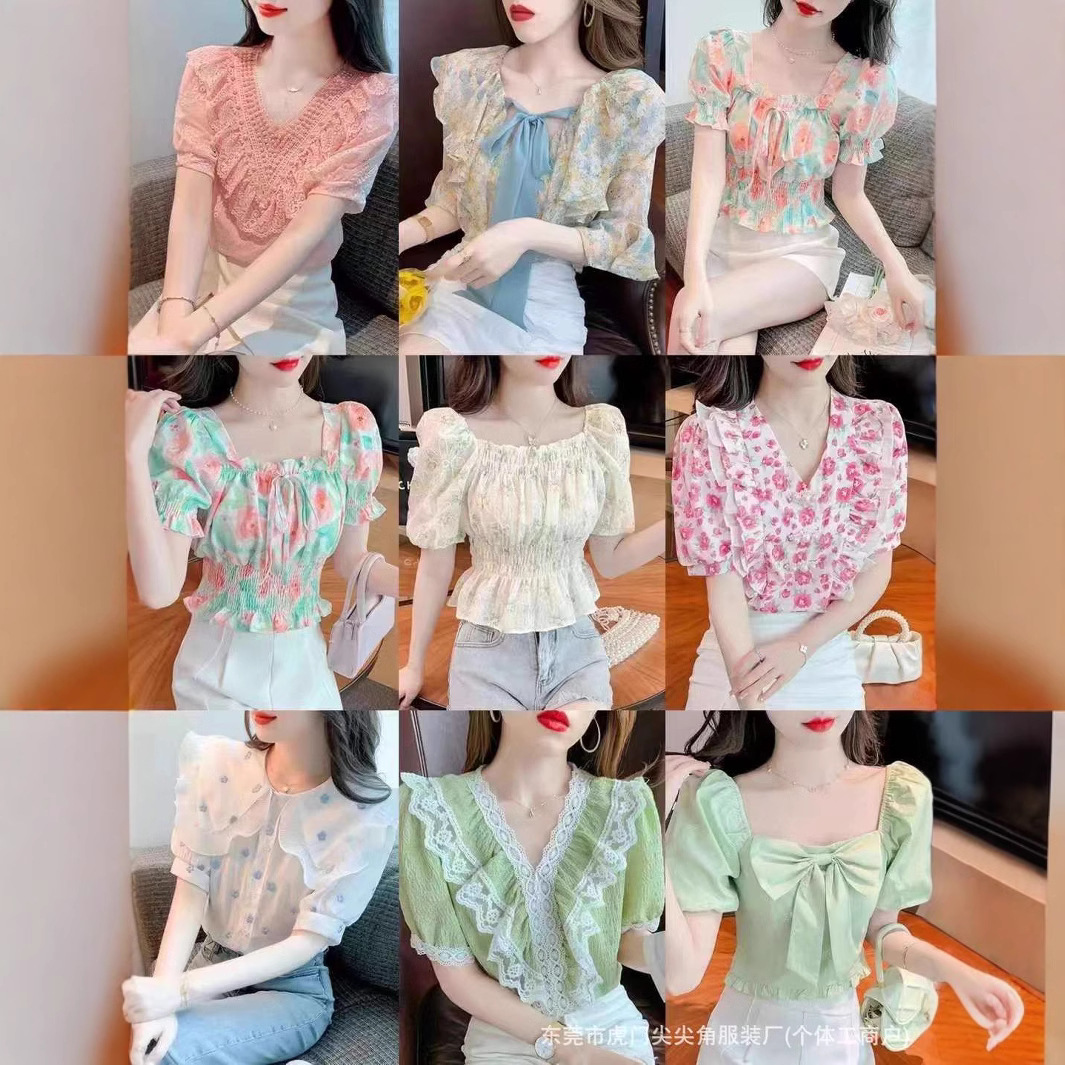 floral top women's design niche shirt 2023 summer new classic style western style chiffon small shirt women's short sleeve 中文版