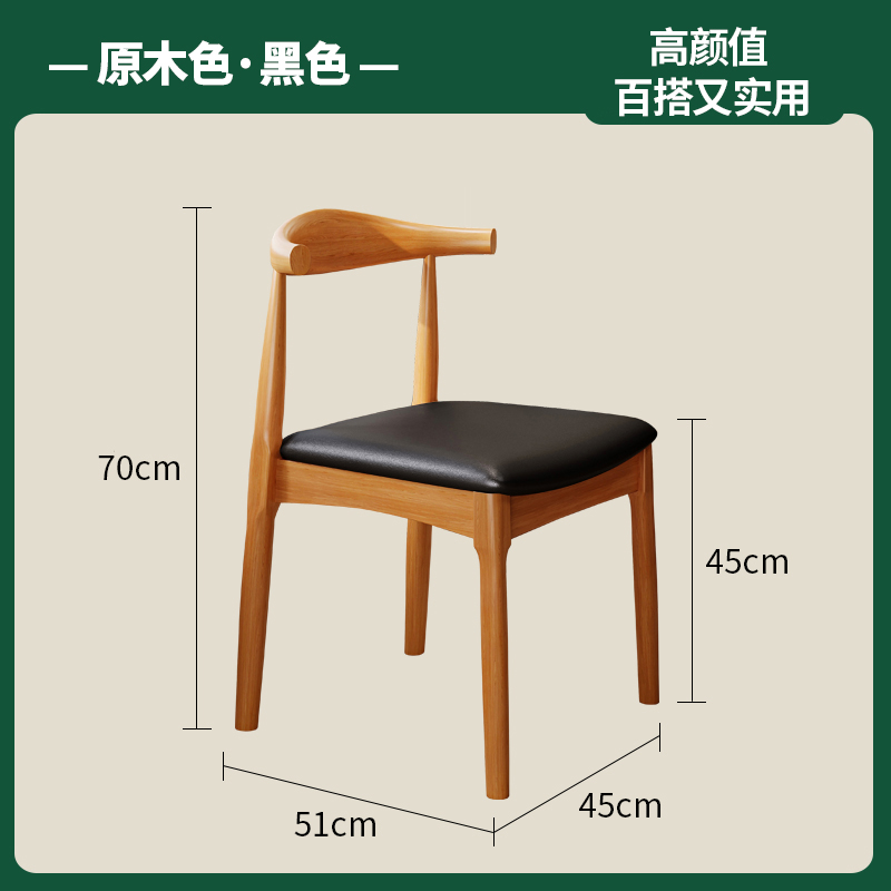 [two packs] walnut stand leather seat surface large ox horn chair [high quality rubber wood-stable load-bearing]]