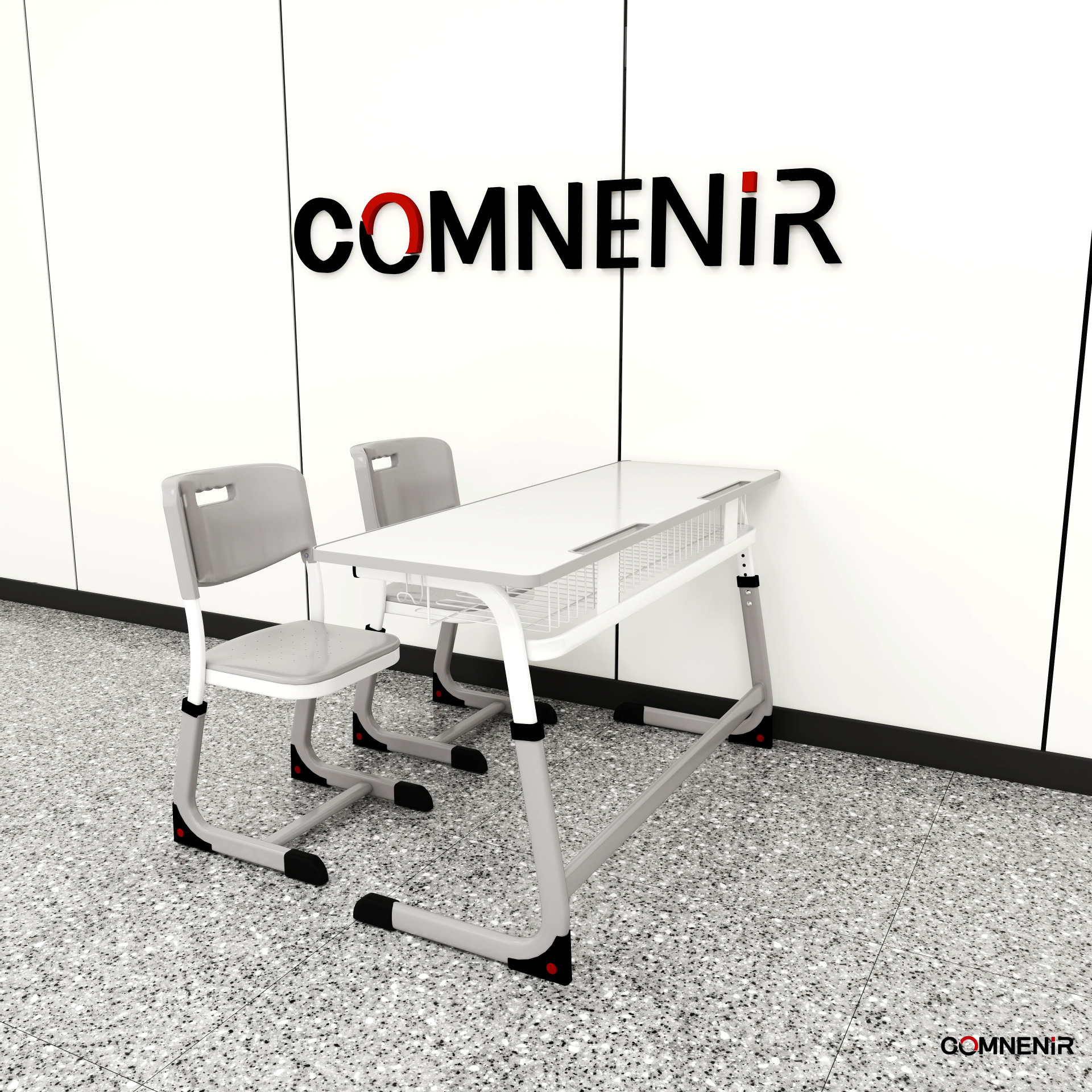 french double school desk and chair gray