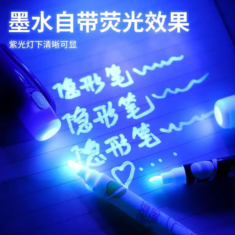 invisible fluorescent pen light pen luminous invisible pen uv ballpoint pen head internet celebrity secret writing will shine 中文版