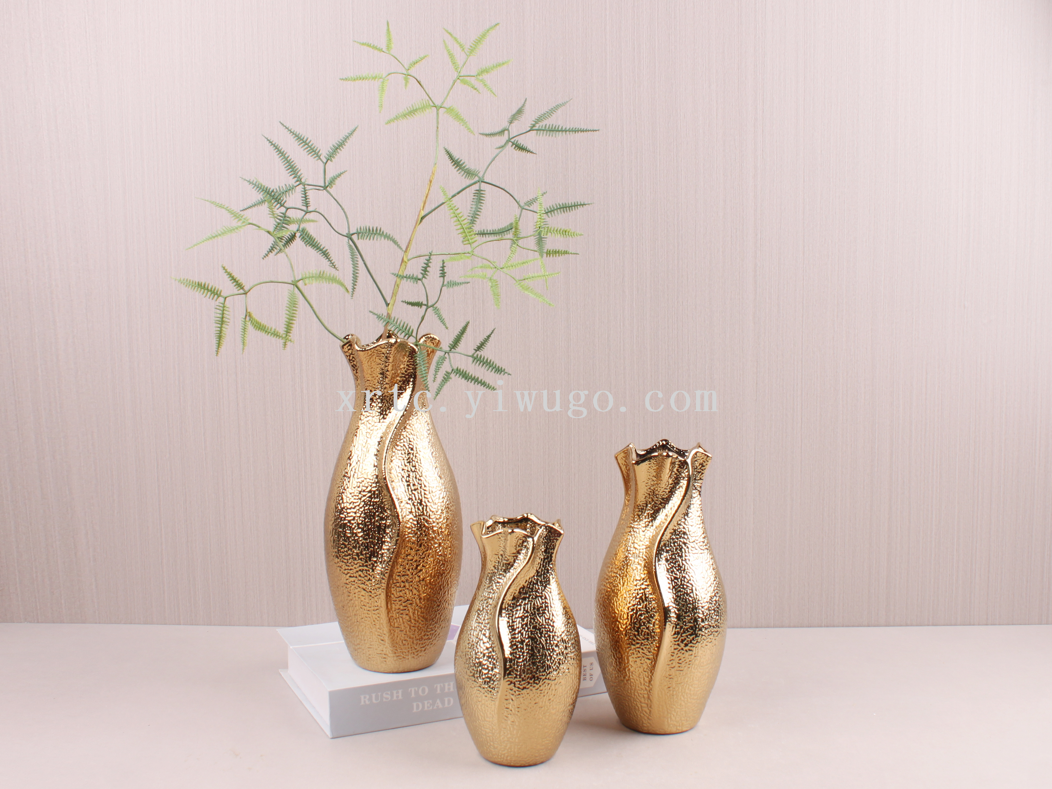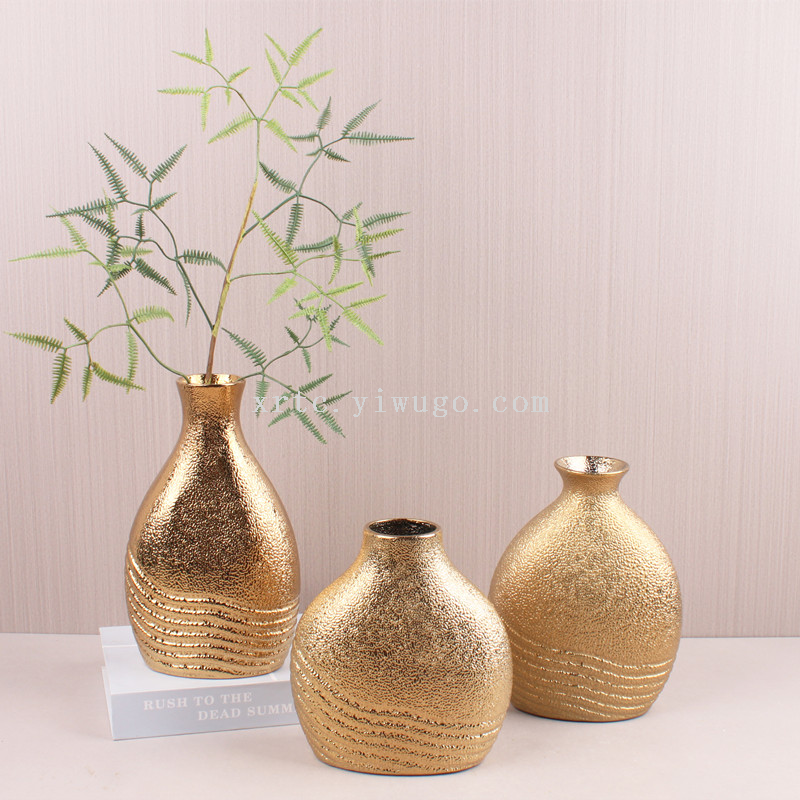 new affordable luxury style ceramic golden vase dining table flower arrangement flower ware hotel wedding sample room decoration