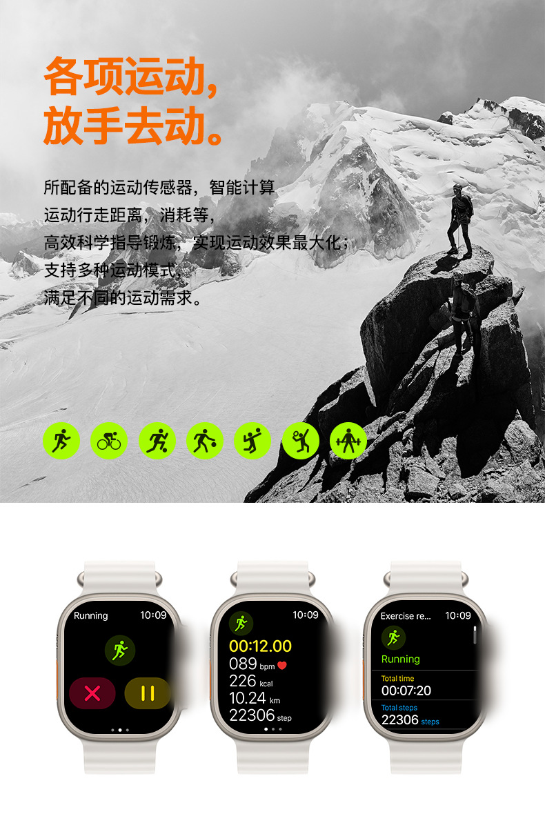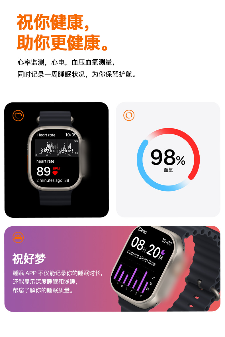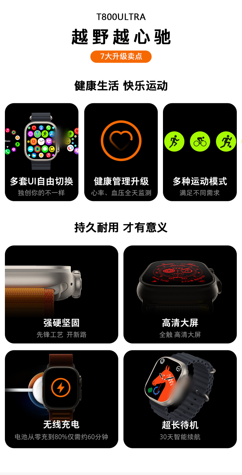 cross-border hot t800 ultra smart watch multi-function heart rate health detection smart bluetooth calling watch