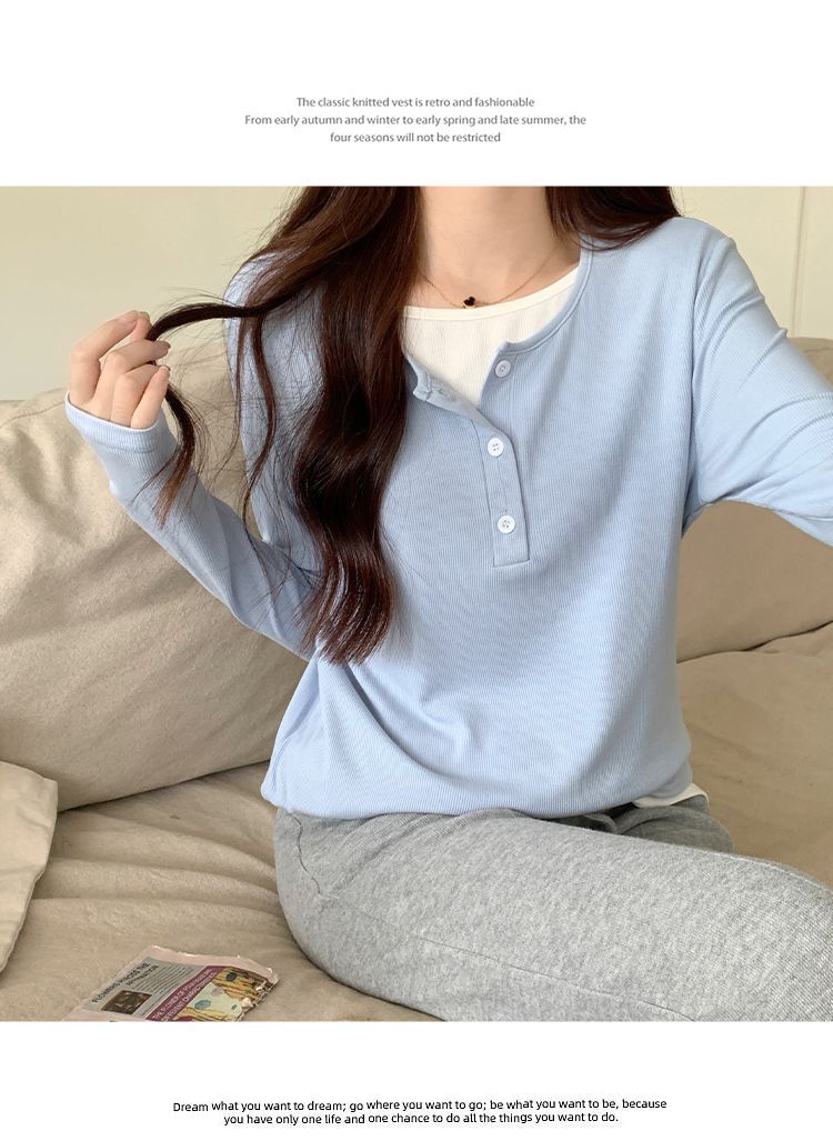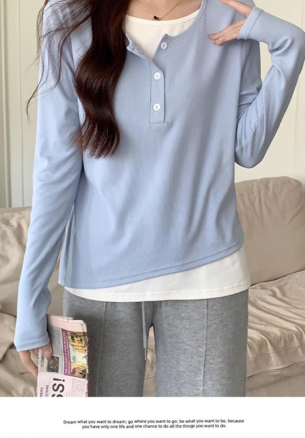 40 cotton [92 cotton 8 spandex] plump girls plus size women's fake two-piece long-sleeved t-shirt bottoming shirt top 100.00kg