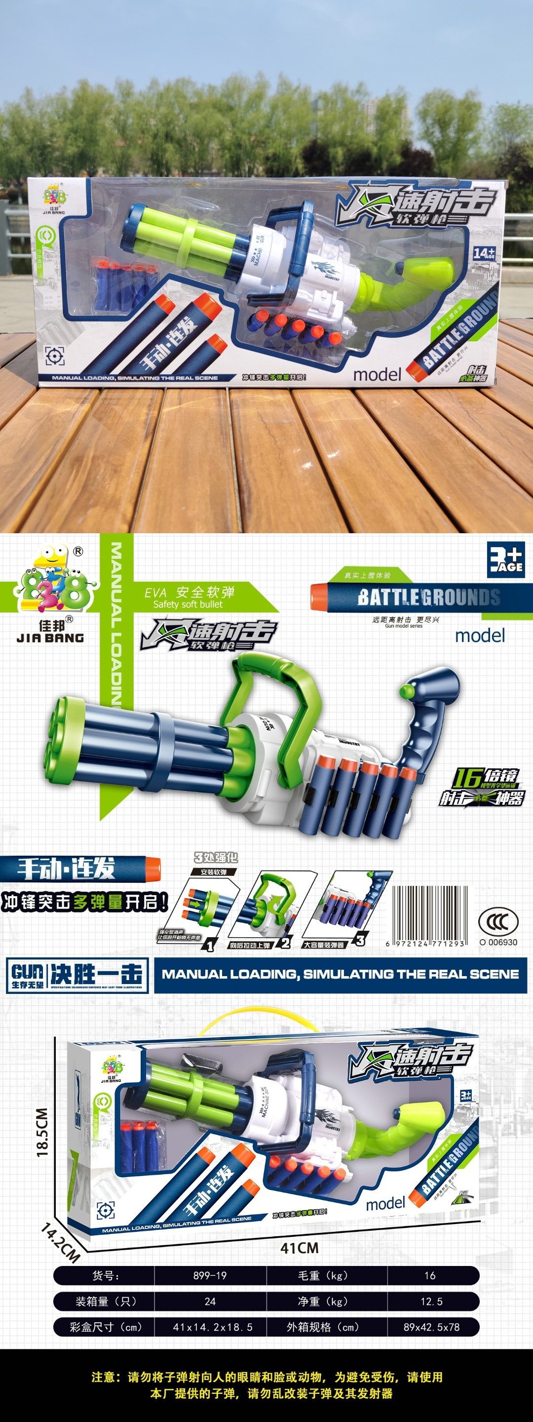 manual continuous hair gatling soft bullet gun 899-19