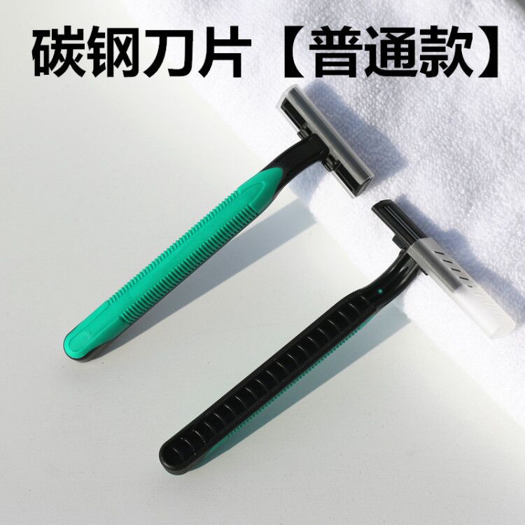 green plastic handle + shaving cream
