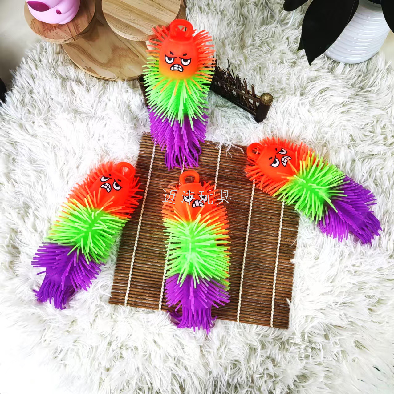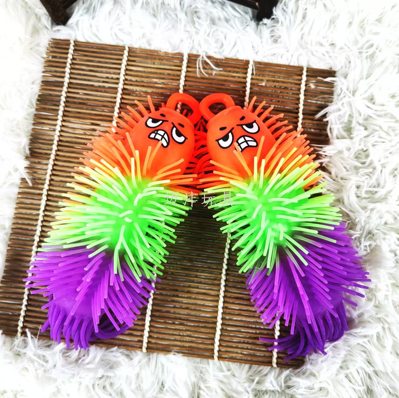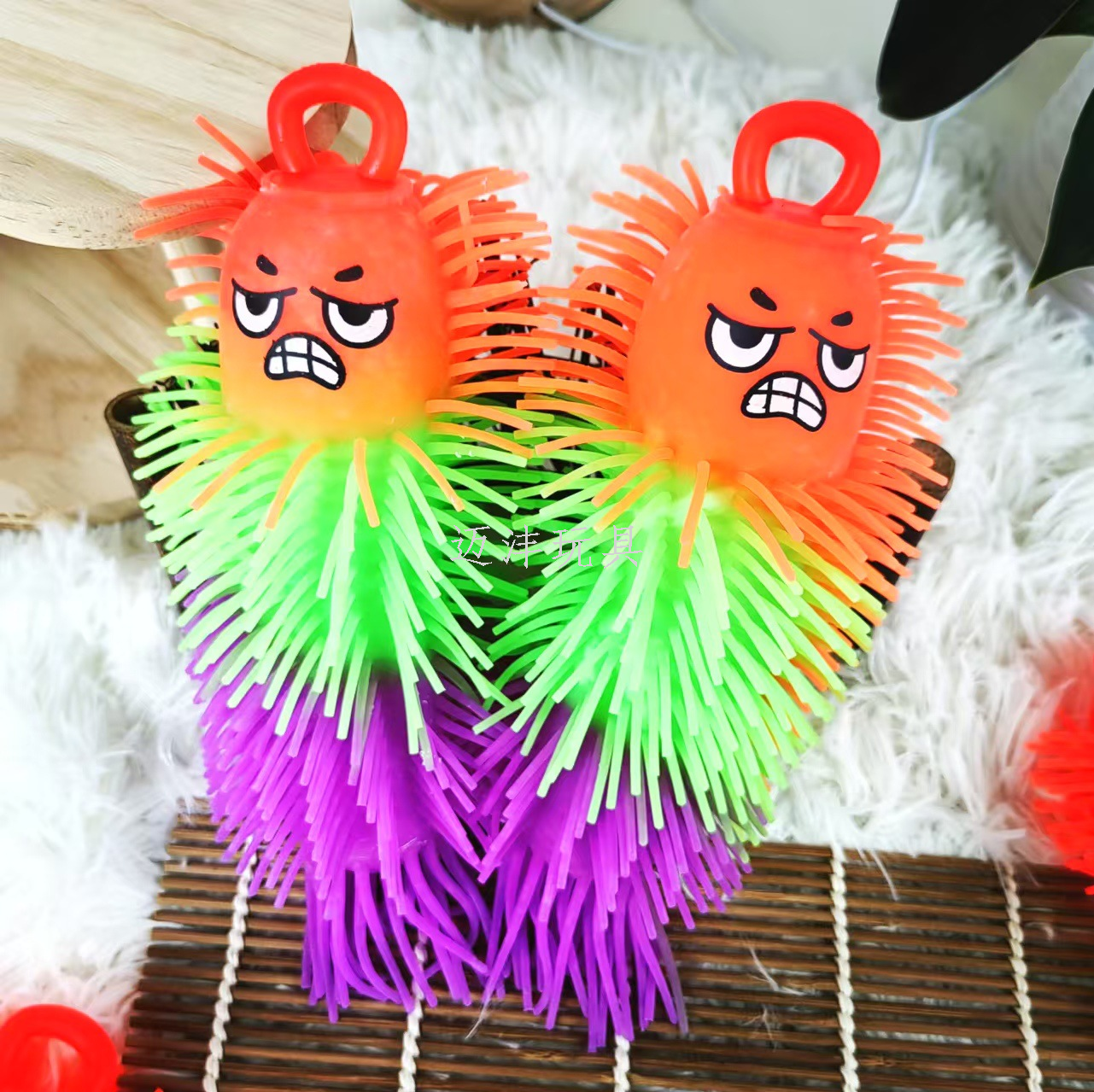 amazon hot sale three-color dense hair monster luminous hairy ball vent ball children's flash toy stall night market 中文版