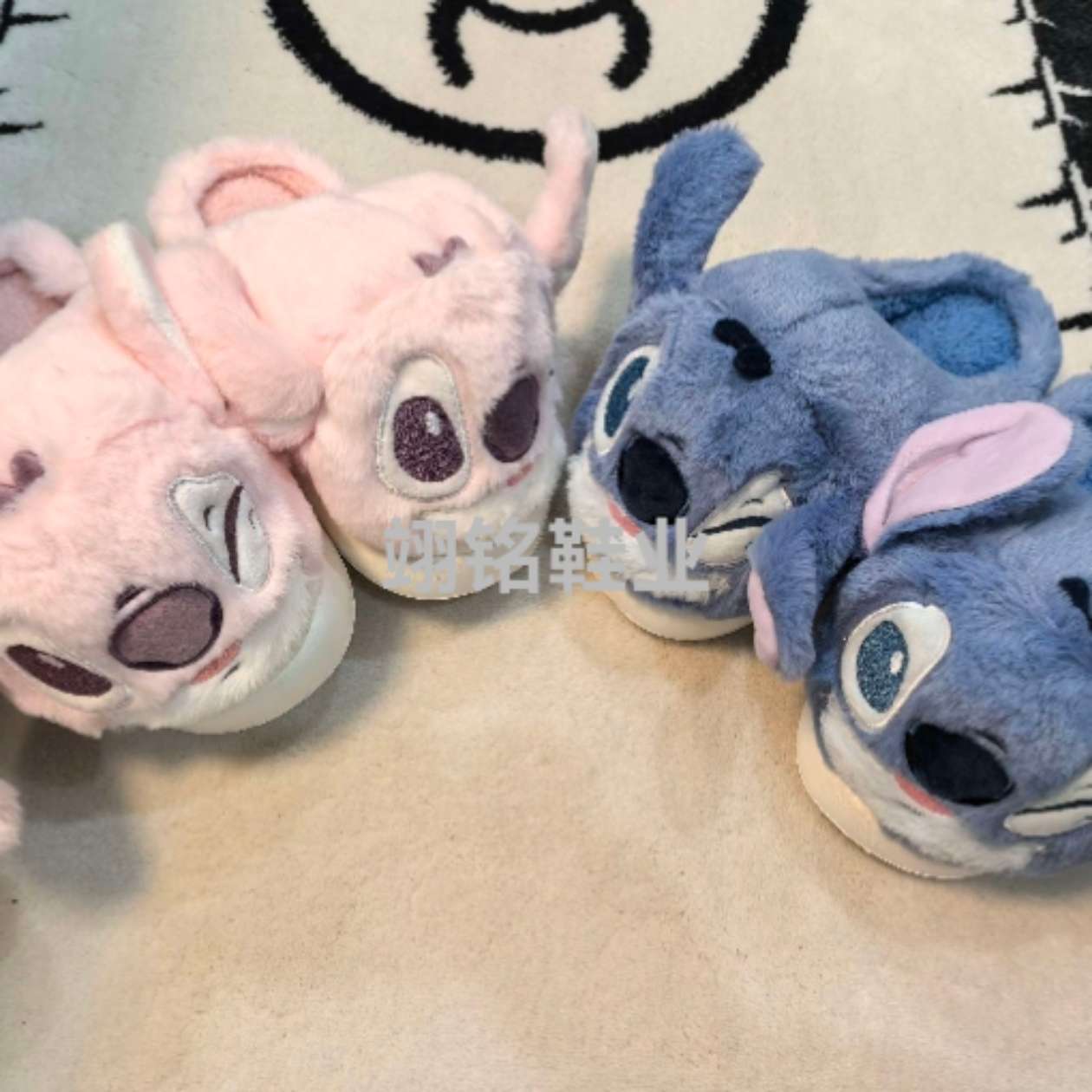 winter new stitch cute cartoon plush slippers home indoor non-slip thick bottom eva cotton slippers foreign trade 中文版