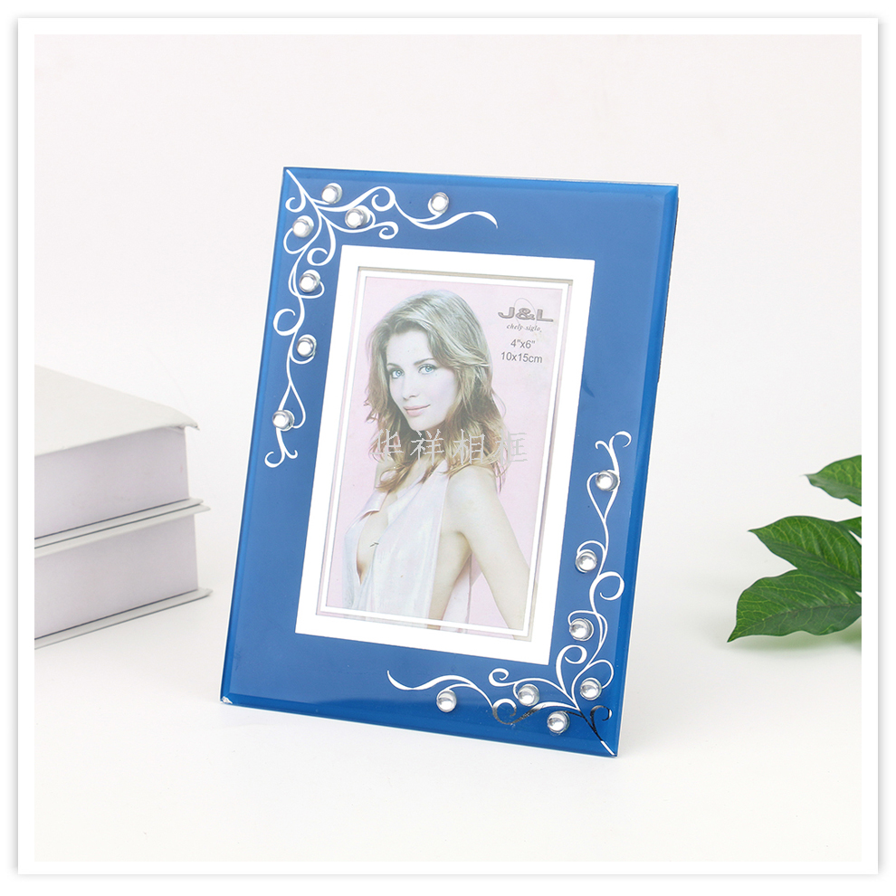 crystal glass photo frame 6-inch 7-inch spot drill light luxury decoration 6-inch 7-inch photo frame simple studio bead customization 中文版