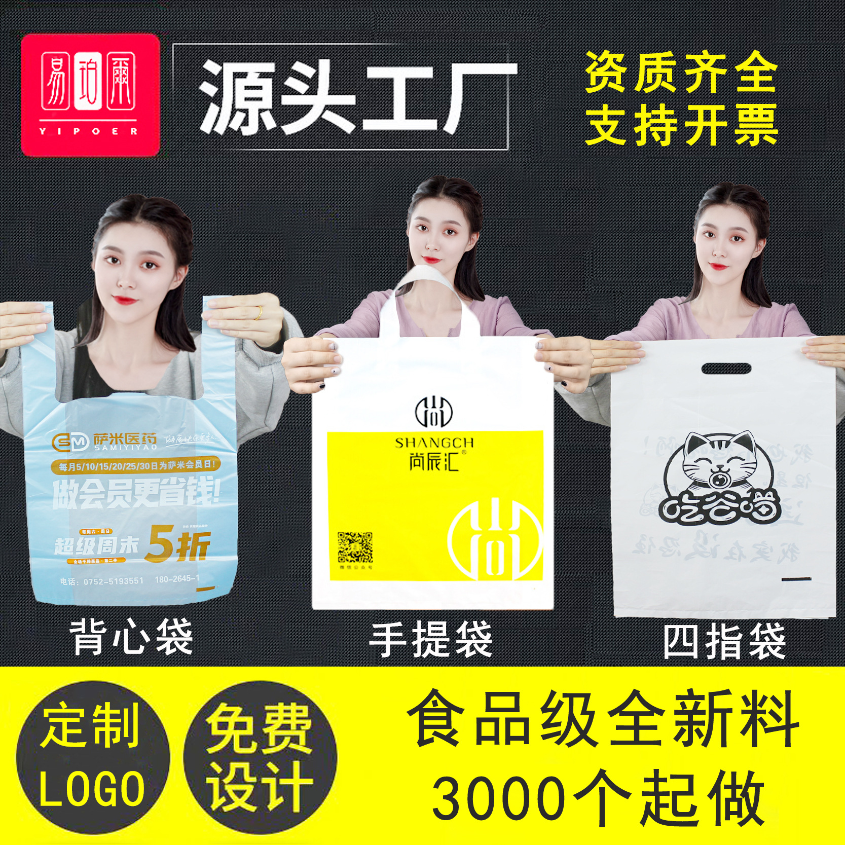 | transparent grocery bag 28 * 45cm [medium thickness] 50 pcs/bundle (by bundle) | ¥3.38 | 9826 bundle available |