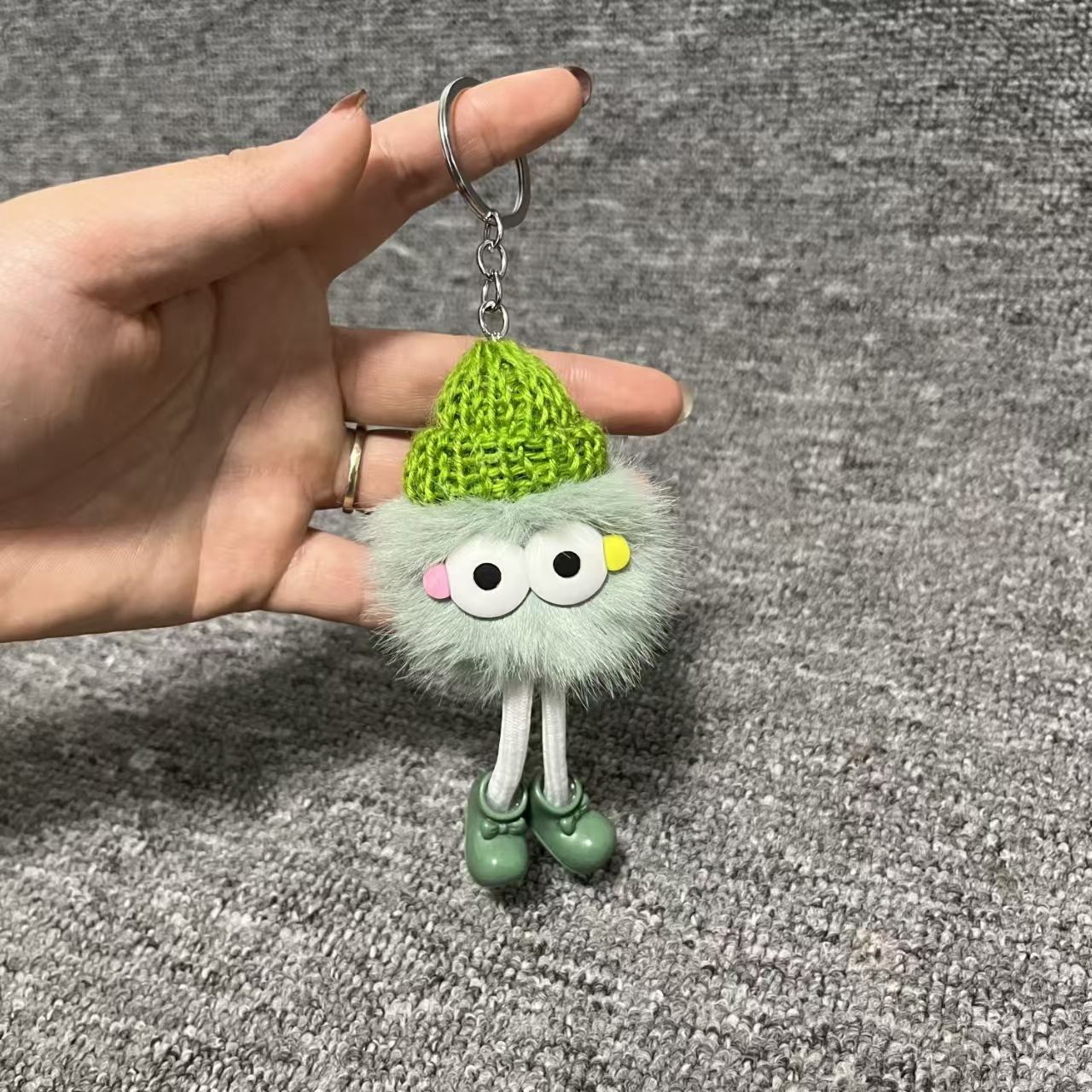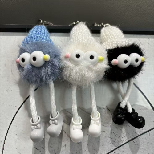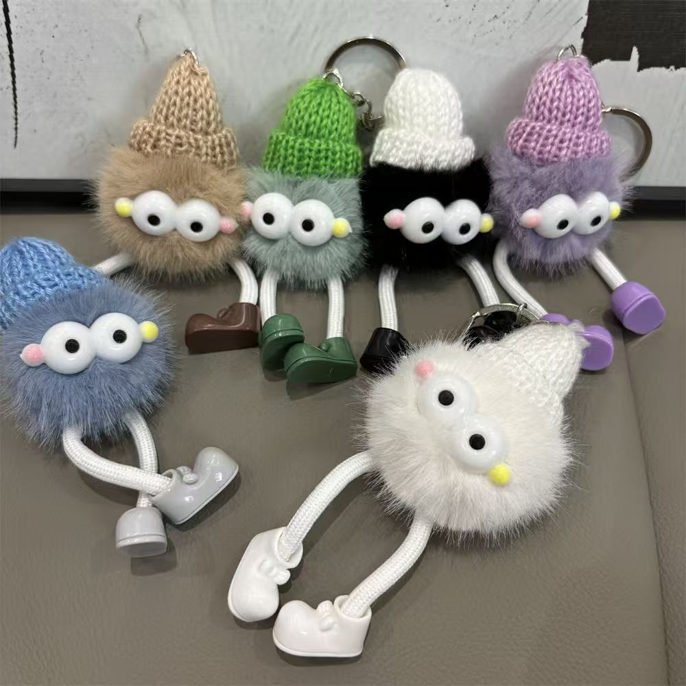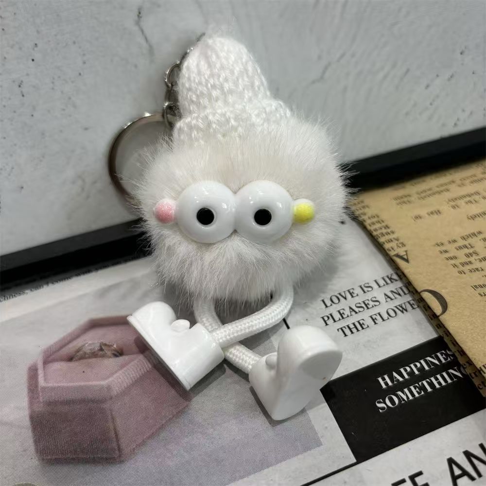 High-quality appearance fur ball accessories, fluffy eyes keychain, coal ball school cute bag backpack
