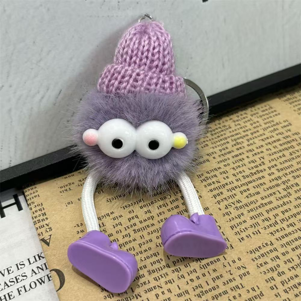 good-looking furry ball decorations plush eyes pendant keychain briquette school lovely bag 中文版