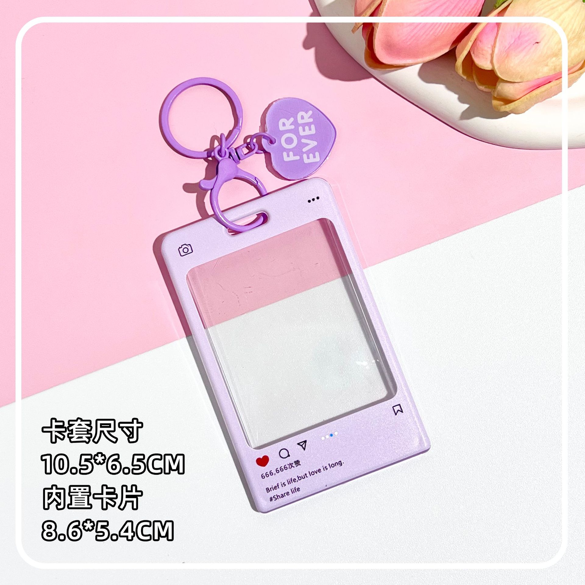 slide cover transparent-purple dialog box + white same color double circle spring rope (purple chain + heart acrylic sheet)