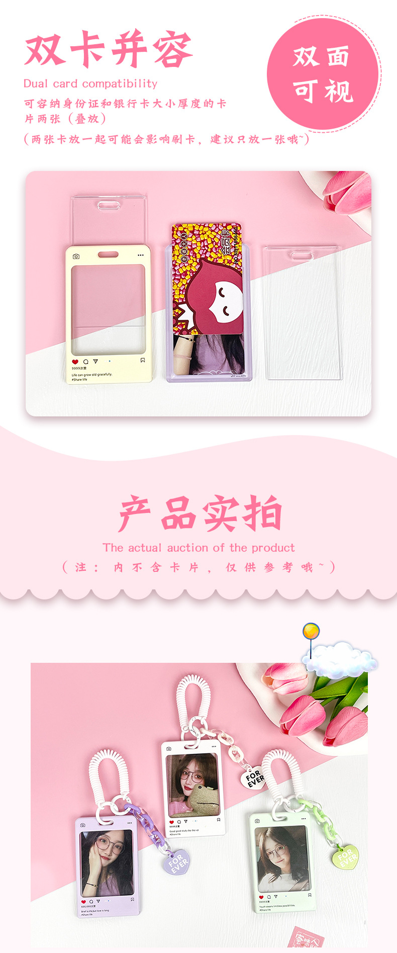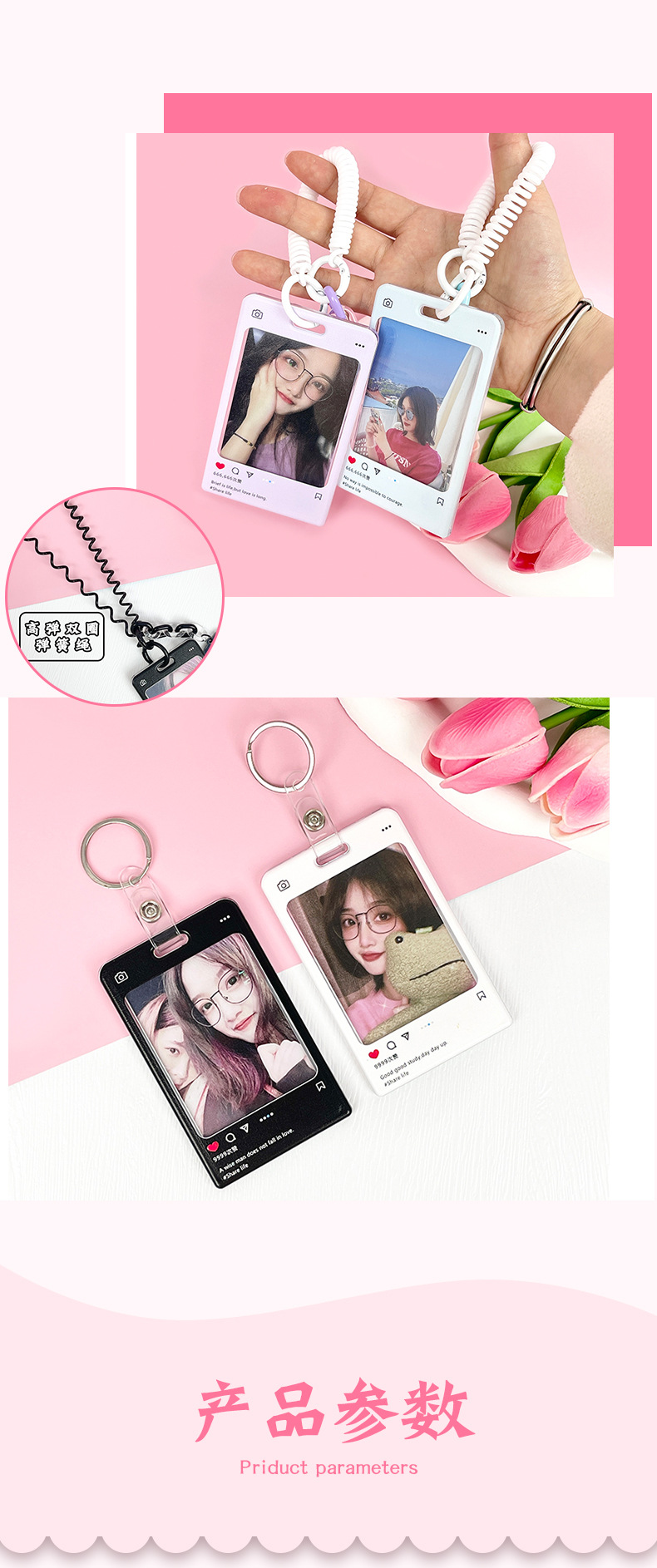 slide transparent-pink dialog box + white double circle spring rope (pink chain + heart acrylic sheet)