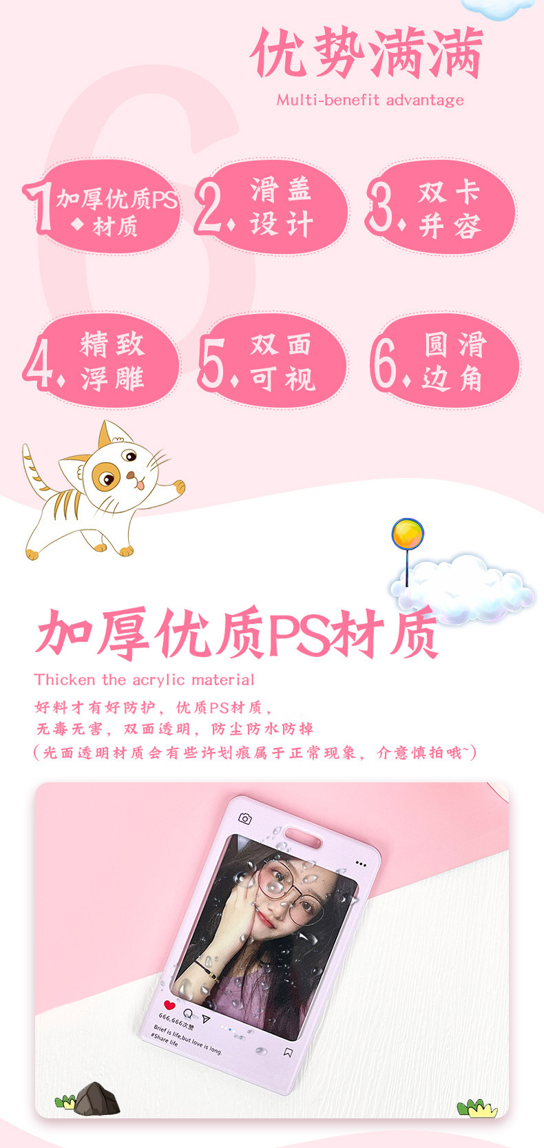 slide transparent-pink dialog box + pink cat hidden hook long shoelace