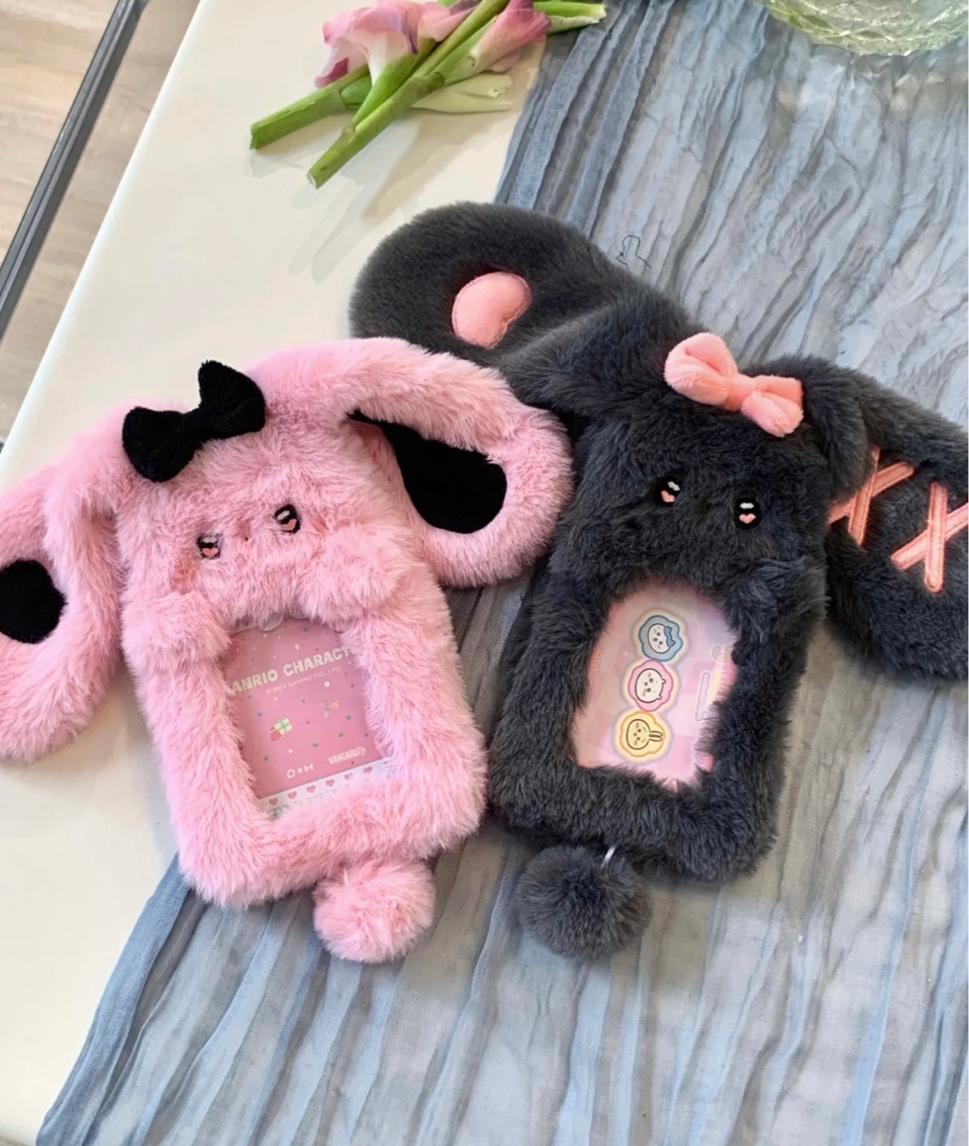 pink ear lop eared rabbit card holder