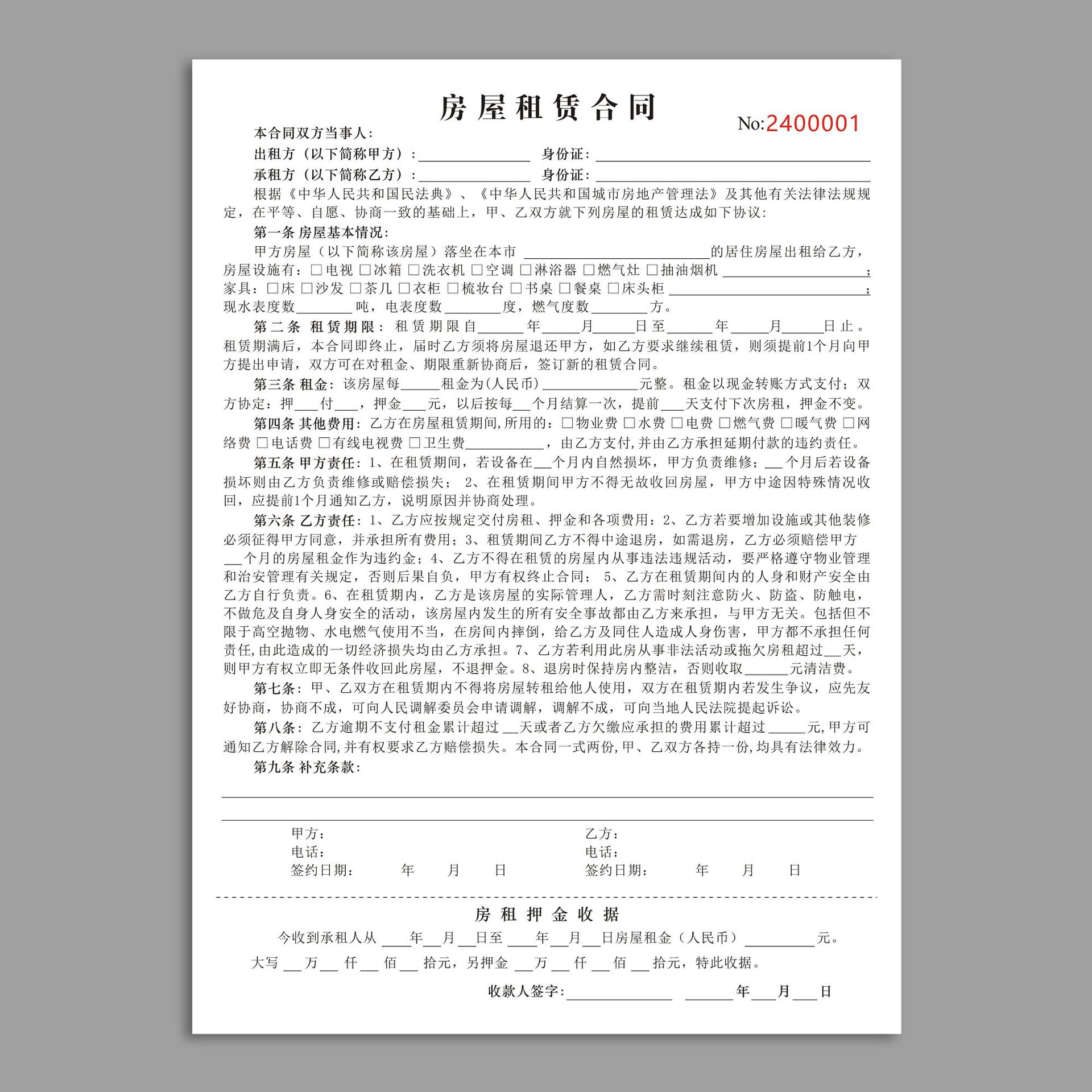 house lease contract 40 pages 20 copies [landlord version] + self-contained integrated base plate